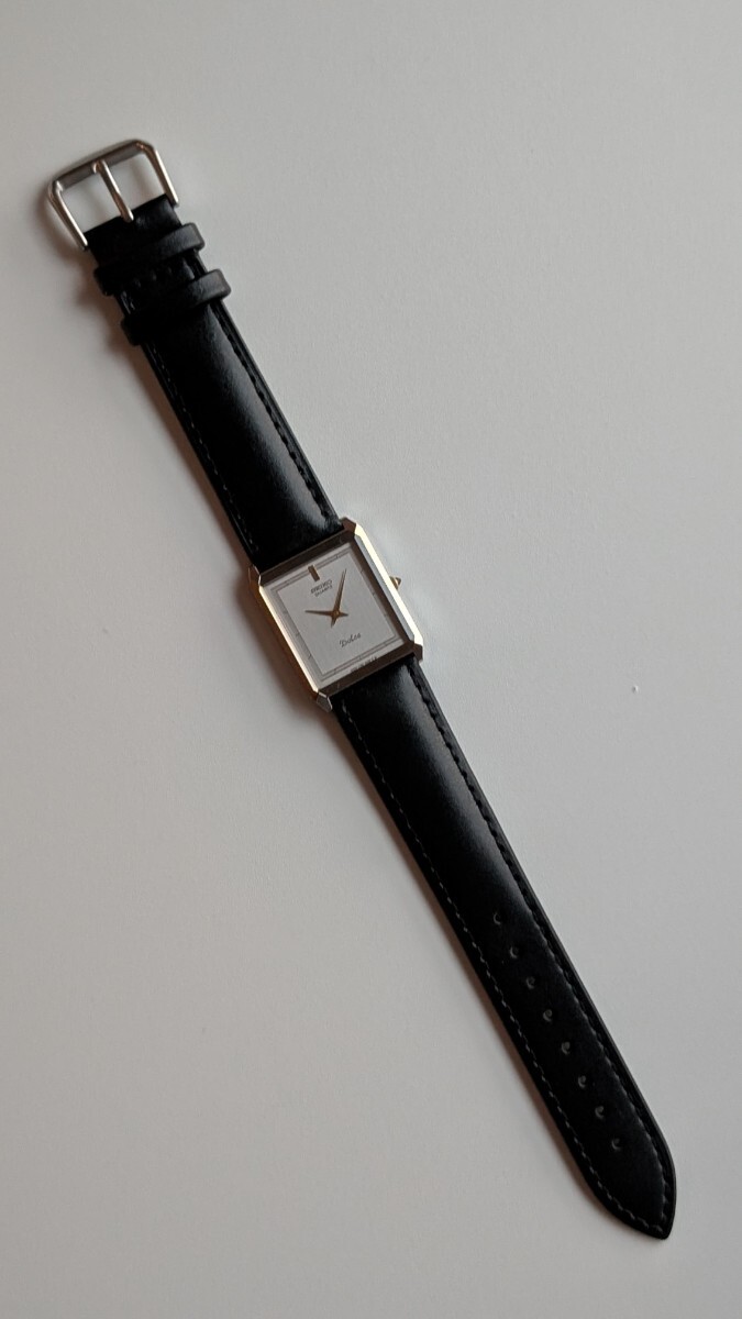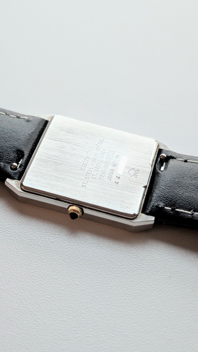 カルティエを彷彿とさせるLuxuryなオニキスリューズをあしらえた一般よりもグレードの高いSEIKO DOLCE セイコードルチェ クォーツメンズ腕時計です。