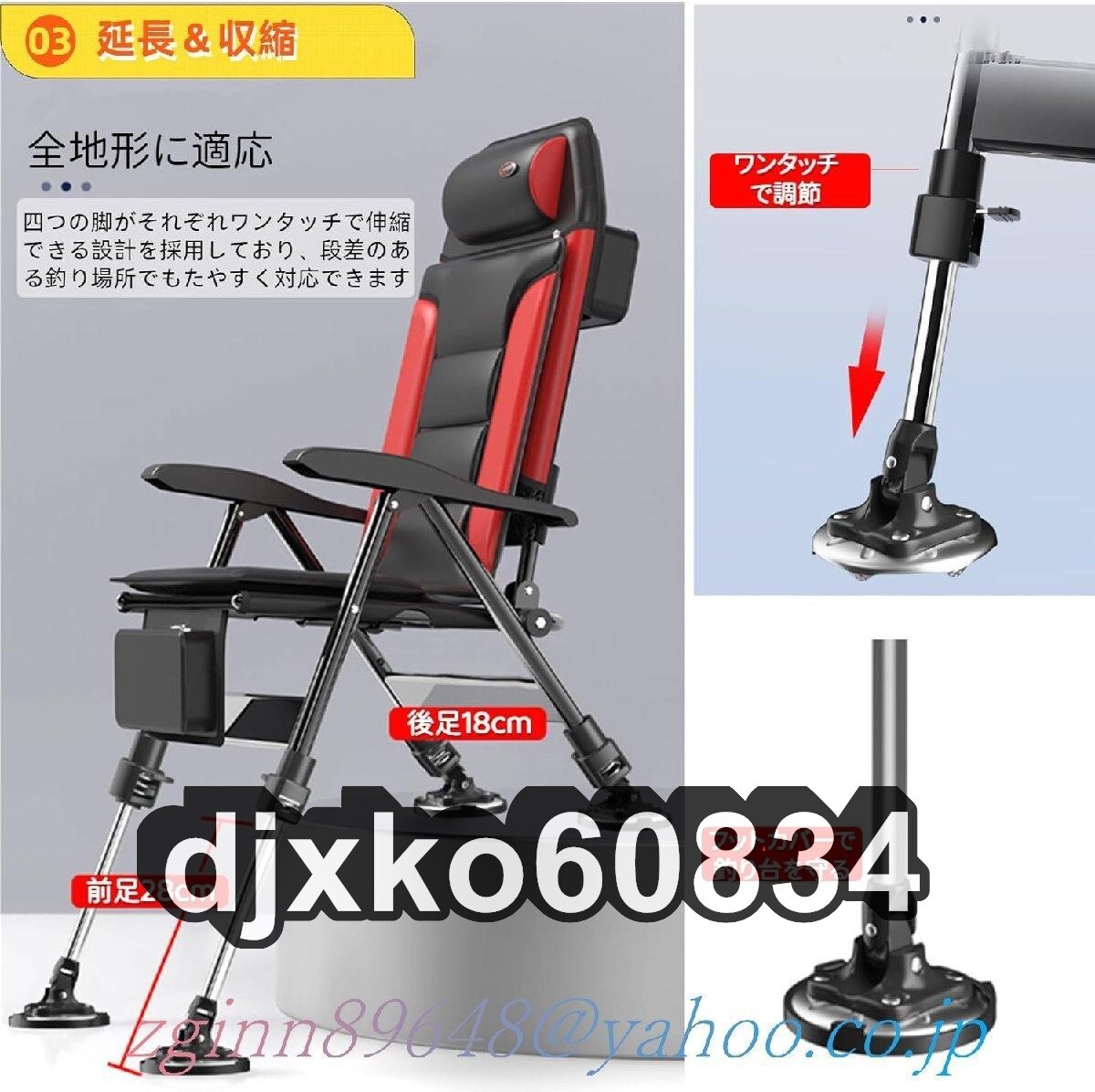 【商品仕様】豪華釣りチェアセット・快適な釣り体験を始めるセット内容:チェア本体+収納リュックバッグ+6pcs部品(餌箱+餌箱ホルダー+アンブレラスタンド+ターレットスタンド+漁網スタンド+フットカバー) 【頑丈・軽量】この釣り用イスはフレーがアルミニウム ・マグネシウム合金でできており、軽量と同時に、耐久性、耐荷重性も優れています。200KGまでも耐荷できます。そして、折り畳み式の設計で、付属の6psc部品も着脱可能で、設営・撤収は超便利です。収納サイズはわずか62cm*82cmで、背に負っても、車のトランクに置いても、ラクラクで、釣りを簡単にするコンパクト釣りチェアです! 【座る〇横になる〇】本釣り椅子は他の釣り椅子に比べて、背もたれが角度調節可能の方面で、目立ちます。0°から180°まで、合わせて6段階間に調節可能です。そして、パッド付きヘッドレスト+アームレスト+人間工学に基づいたタスランメッシュシートの座席構造で、座り心地が素晴らしくて、長時間同じ姿勢を保つ疲れをちゃんと和らげます。釣りを快適にします! 【オールシーズン】弊店の釣りチェアは座席がタスラン素材を採用しており、通気性抜群で汗蒸れしにくく、涼しくて快適で、春夏に適用します。秋冬になると、着脱可能の3Dクッションを付ければ、暖かくなるし、座り心地もより一層よくなります。専門の釣り用チェアだけでなく、普通のアウトドアチェアとインドアチェアとしても、大活躍で、コスパ最高! 【全地形に適応】本釣り用イスは四つの脚がそれぞれワンタッチで伸縮できる設計を採用しており、前足は最大28cmまで、後ろ足は最大18cmまで伸びることができ、段差のある釣り場所でもたやすく対応できます。そして、各脚はそれぞれスパイクが付属しており、地面の状況により角度が変えられ、斜面や砂利道でもちゃんと安定を保つ全地形に適応した釣りチェア!