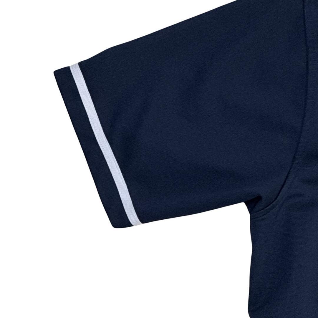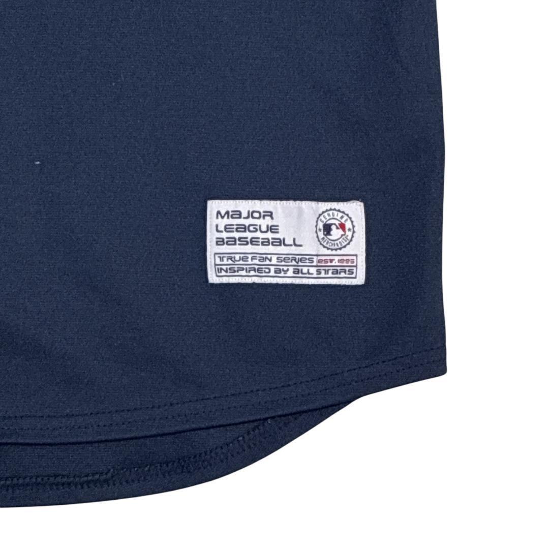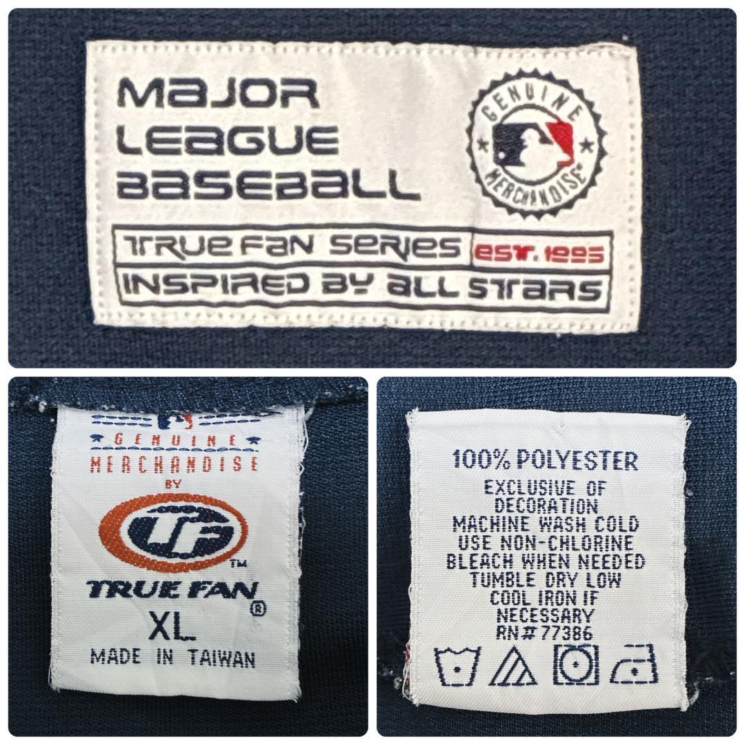 MLBタイガース TRUE FANトゥルーファン 刺繍ロゴ ベースボールシャツ ゲームシャツ ユニフォーム 2XL 紺色 90s 古着 メジャーリーグ