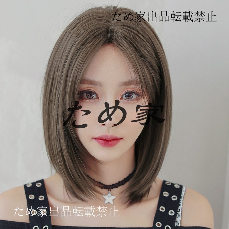 新品人毛 中長髪ストレートウィッグ 鎖骨ミディ レディライク×小顔効果 つむじ部分手植え 自然に見えますフルウィッグ