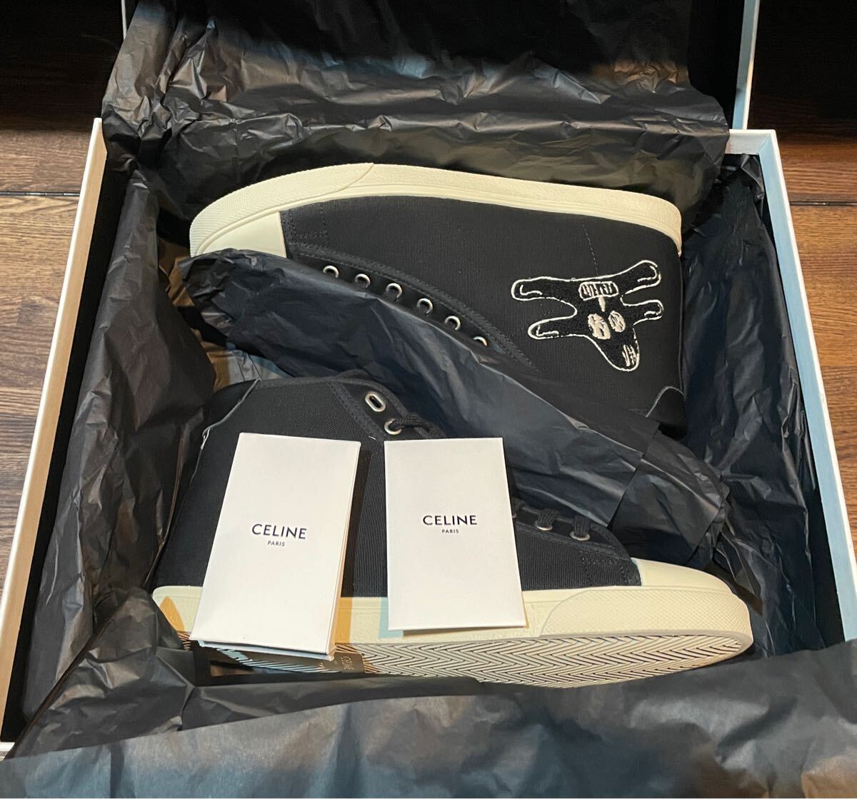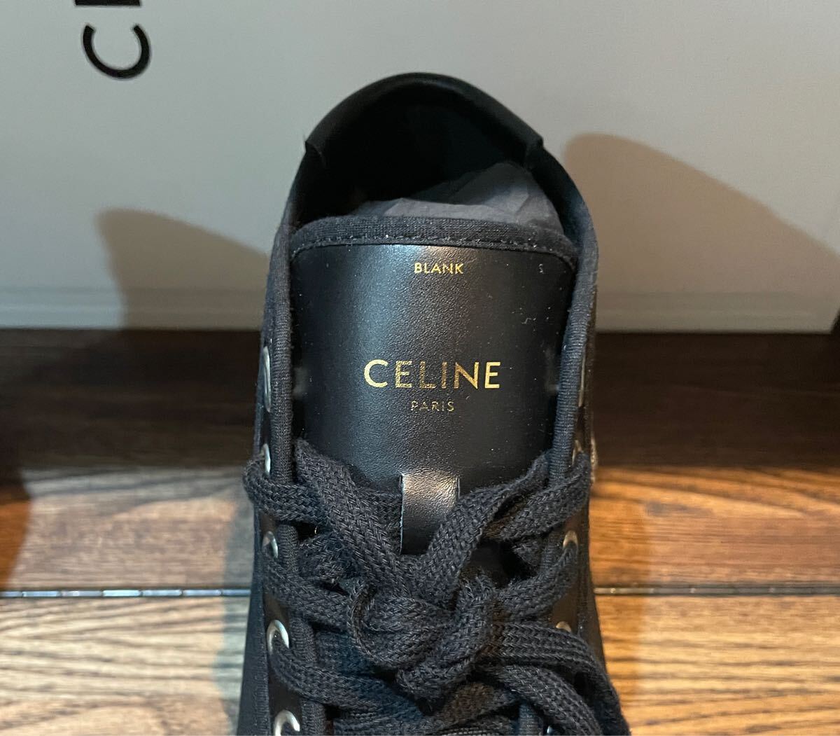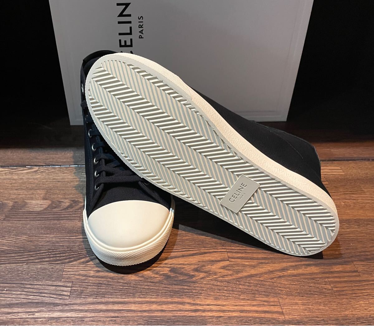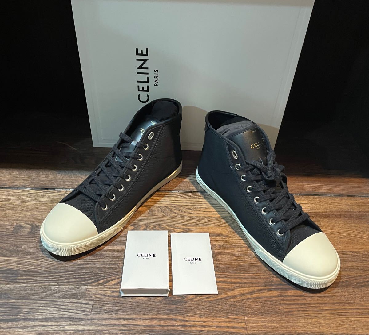 CELINE セリーヌ アンドレ・ブッツァー レースアップ スニーカー 靴 Celine Blank Mid Lace Up Sneaker Canvas Calfskin In Black