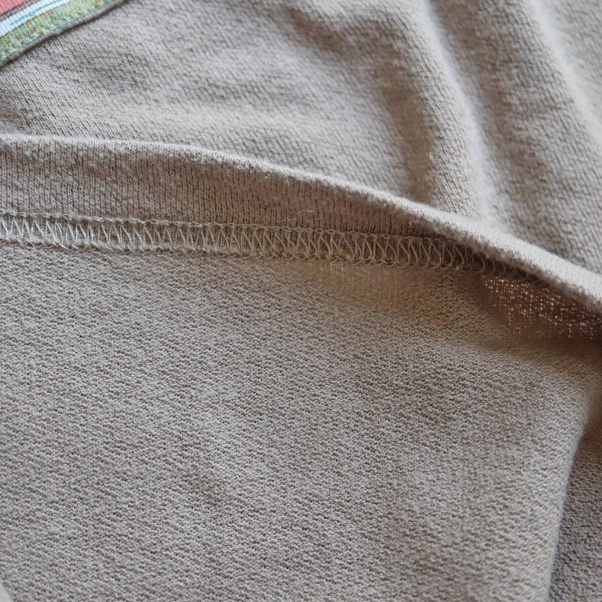 モカ茶~ベージュ サラリとした心地よい生地です。 3シーズン位持っていたでしょうか・・ あまり使用頻度が高くなかったようなので、 きれいな状態です。 素材:綿35 ポリエステル65 サイズ表記:チェスト104~112 サイズ実寸:胸幅56 肩幅50 袖丈22 着丈70 |
