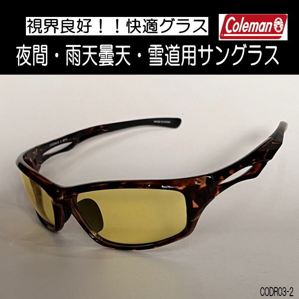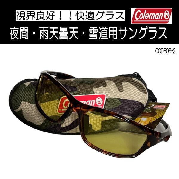 迷彩ケース付 コールマン Coleman 夜間/雪道/雨運転用 サングラス 日本製レンズ UVカット 視界良好 .ドライビンググラス CODR03-2