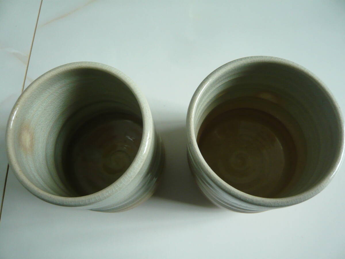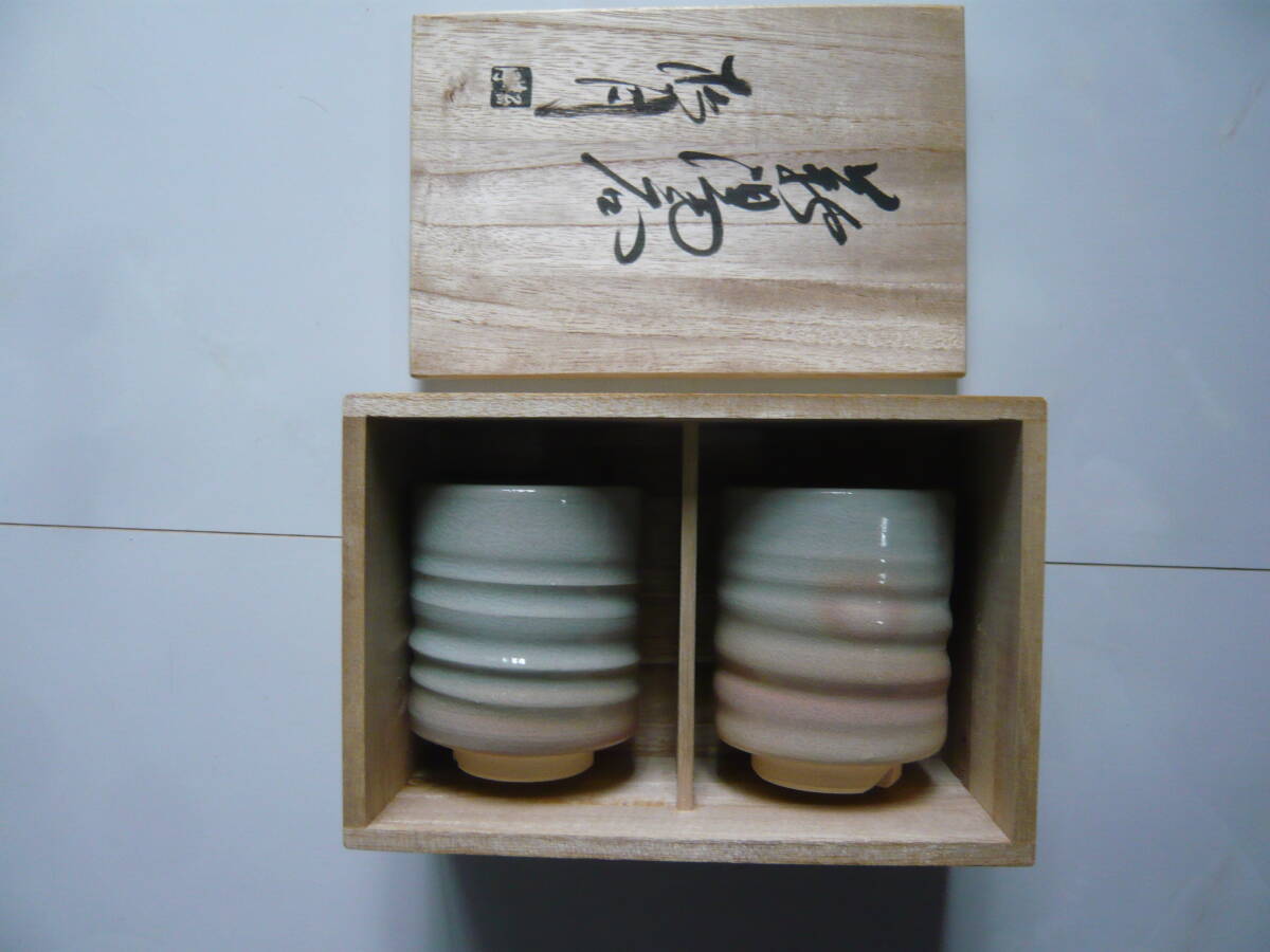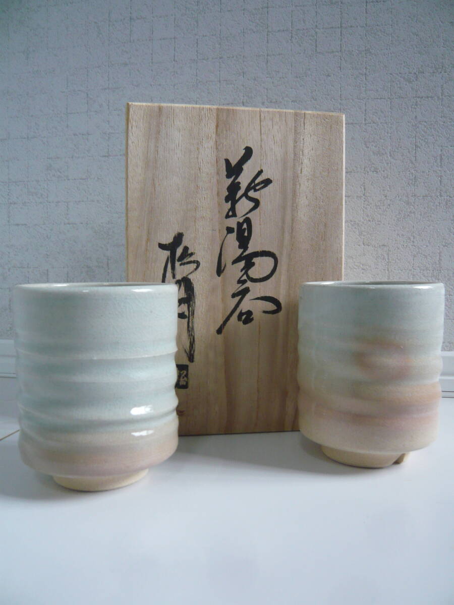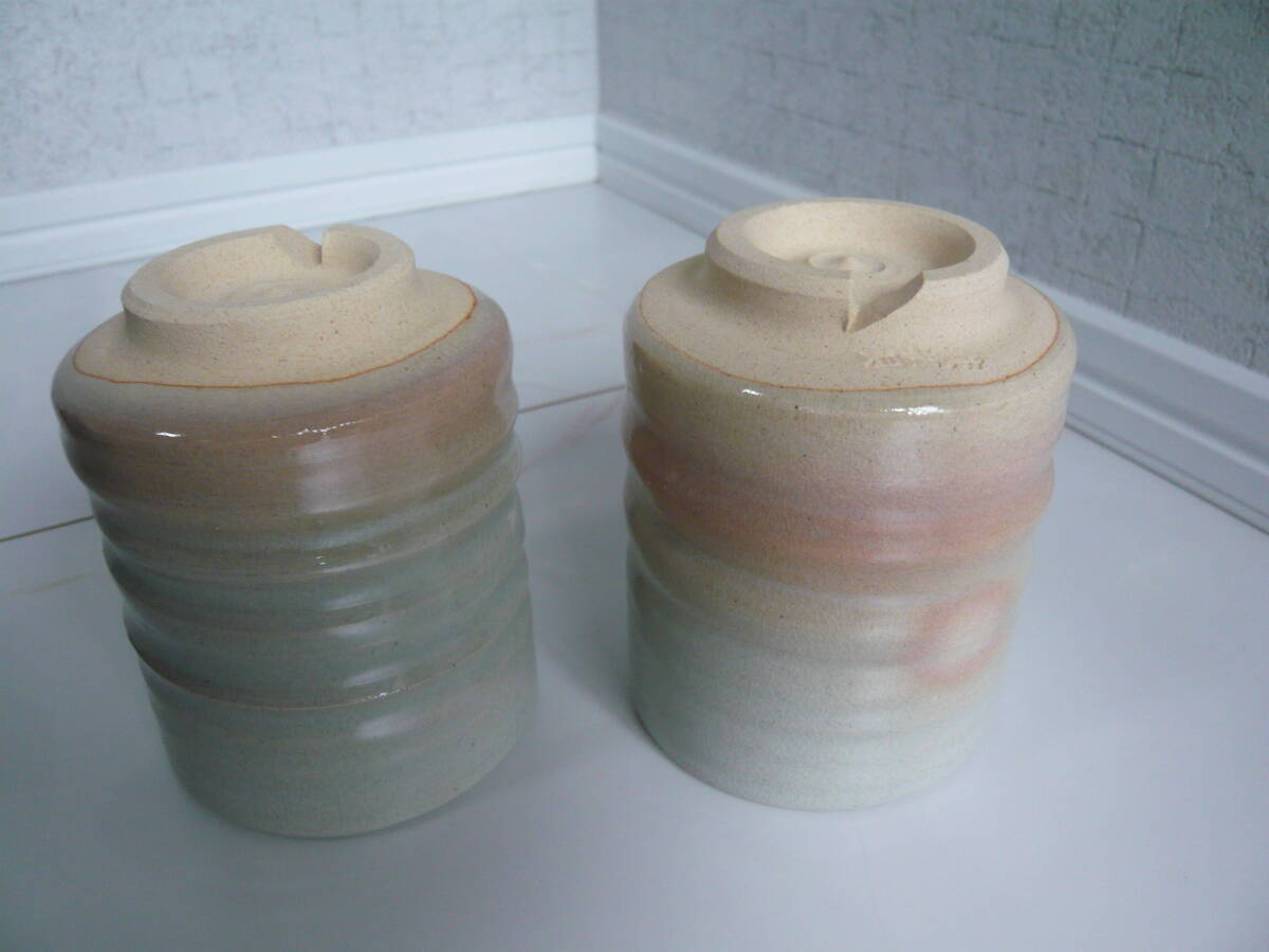 萩焼 本窯元 江風庵 玉村松風 夫婦湯 新品、未使用品です。サイズは高さ9・5、 口径7センチ 特筆すべき問題点はないと思いますが入手後年数が経過していますのでご理解の上入札お願いします。気になる方は入札ご遠慮ください。ノークレームノーリターンでお願いします。