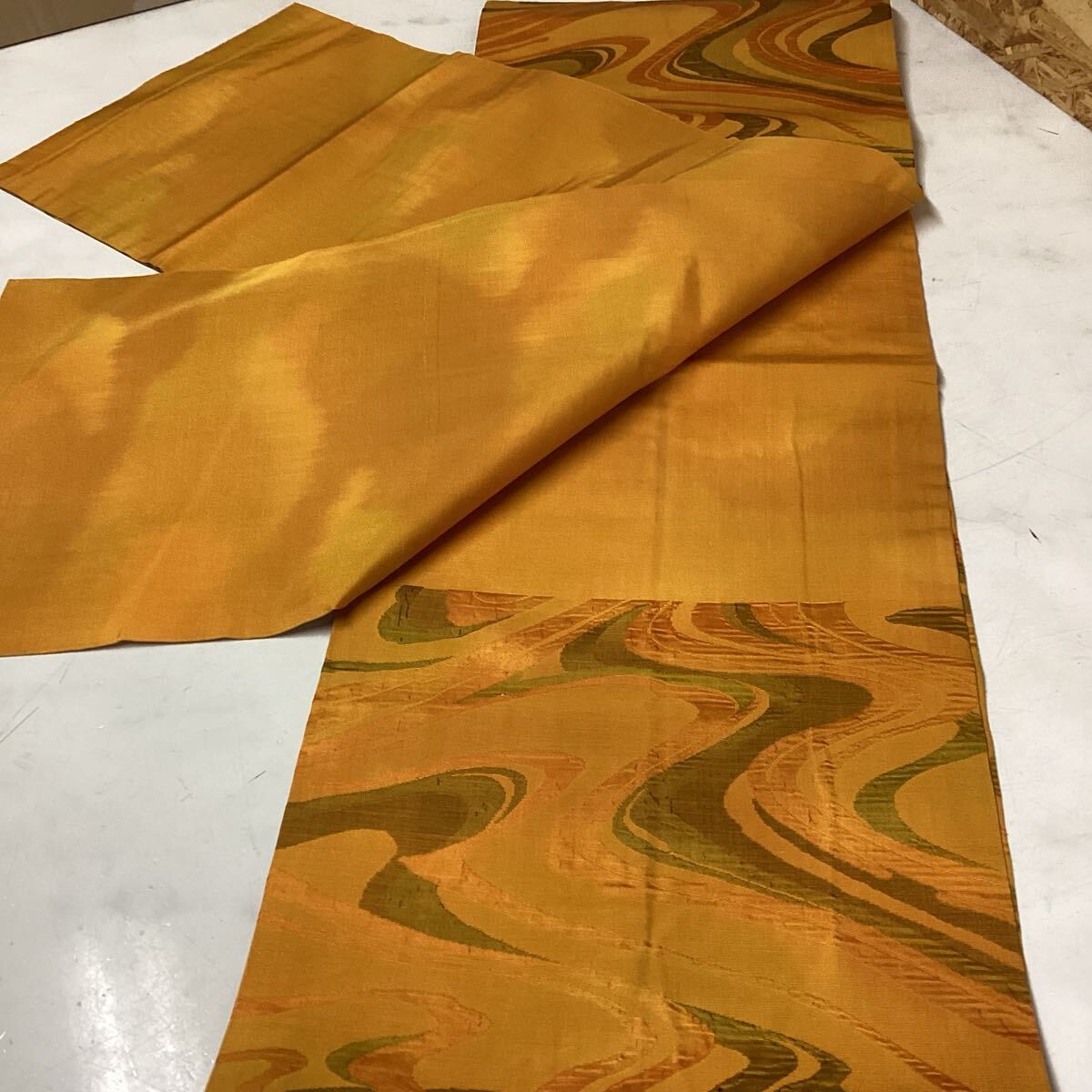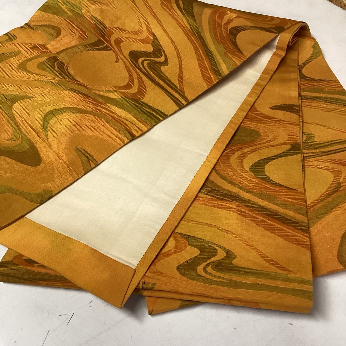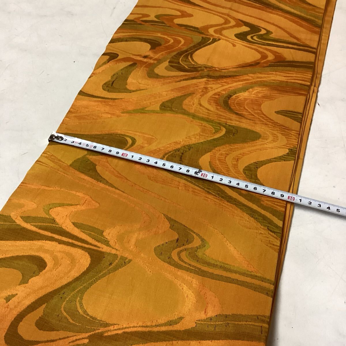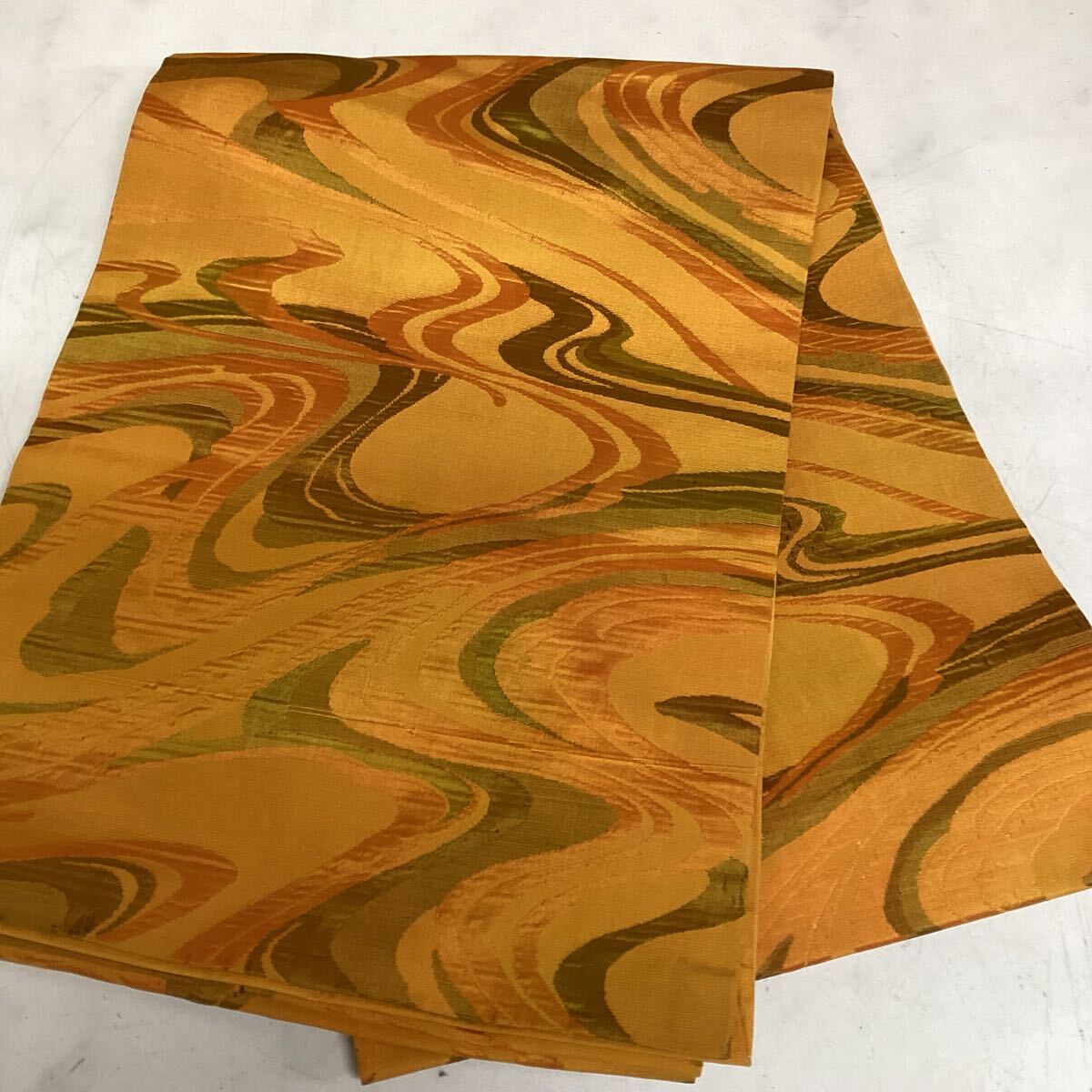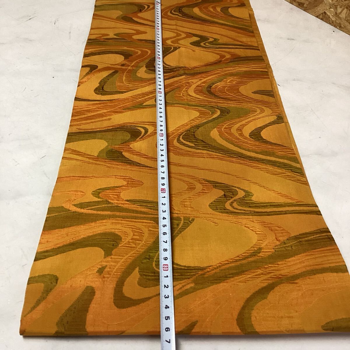 和装 着物 帯 オレンジ系 マーブル模様 カジュアル エレガント (ぬ85)