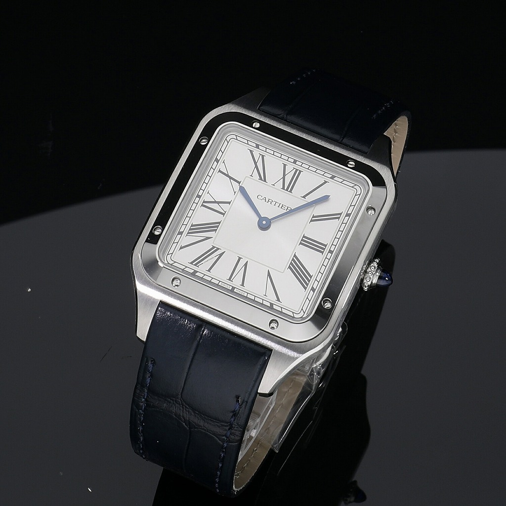 | 商品詳細 | 2020年の新作 飛行士として名を馳せたブラジル人のサントス-デュモン。飛行中に時刻を確認したいという彼の思いをルイ・カルティエが1904年に叶え誕生したのがこのサントスデュモンです。世界初の腕時計とも言われており、今やカルティエのアイコン的存在です。サントス100やガルベなど様々なバリエーションで展開され、時を超えて愛され続ける人気の高いコレクションです。2020年発表のXLサイズは、厚さ7.5mmの薄型ケースに自社製の薄型キャリバー430MCを搭載しています。 |