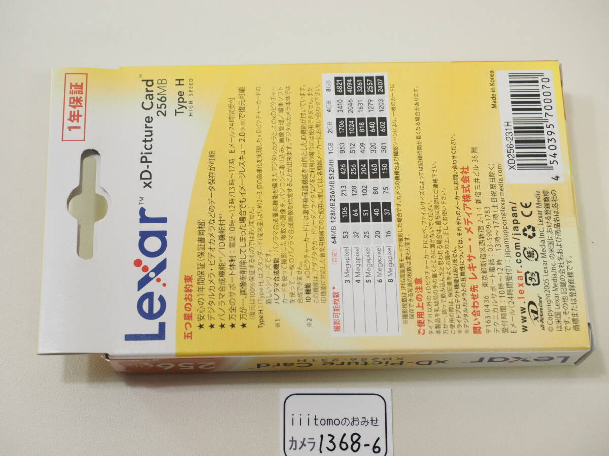管理番号 カメラ 1368-6 タイプ xDピクチャーカード 256MB(TypeH) 未使用ですが、箱にセロテープ貼付があります ブランド名 Lexar レキサー(OLYMPUS オリンパス) 製造国 韓国製 サイズ ━ |