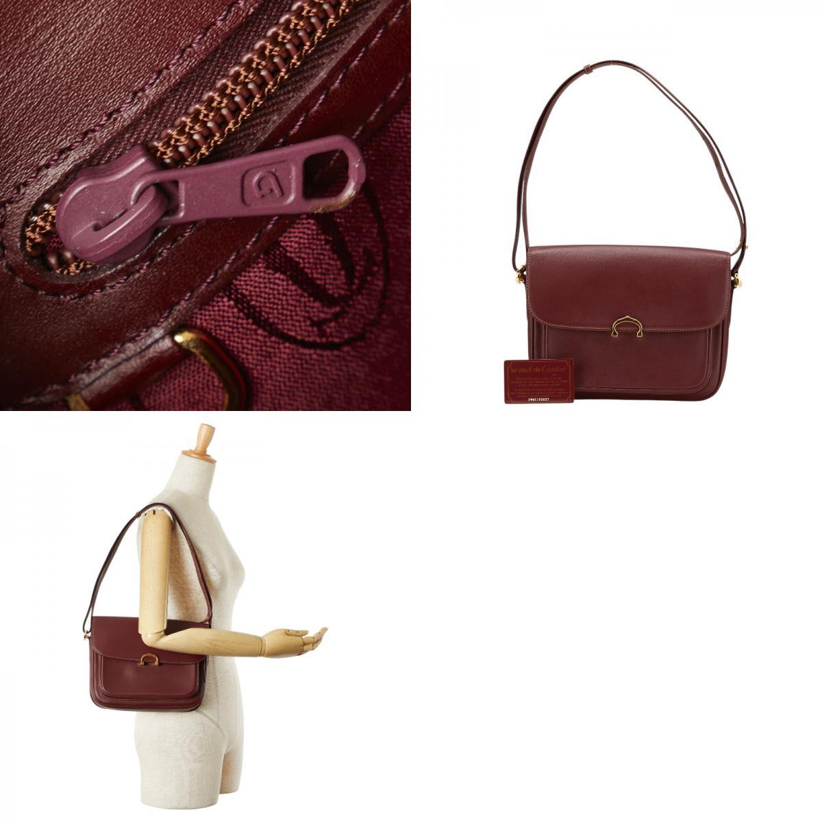 カルティエ マストライン ショルダーバッグ ワインレッド ボルドー レザー レディース CARTIER 【中古】