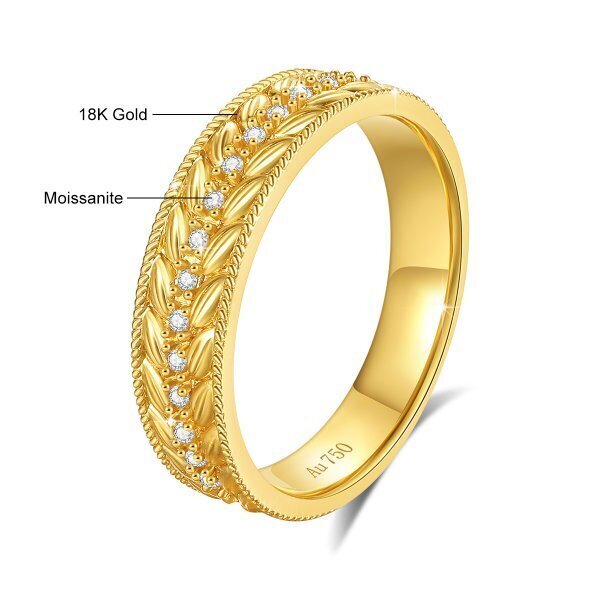 証明書付き、女性用18kゴールド小麦リング、モアッサナイト、高品質
