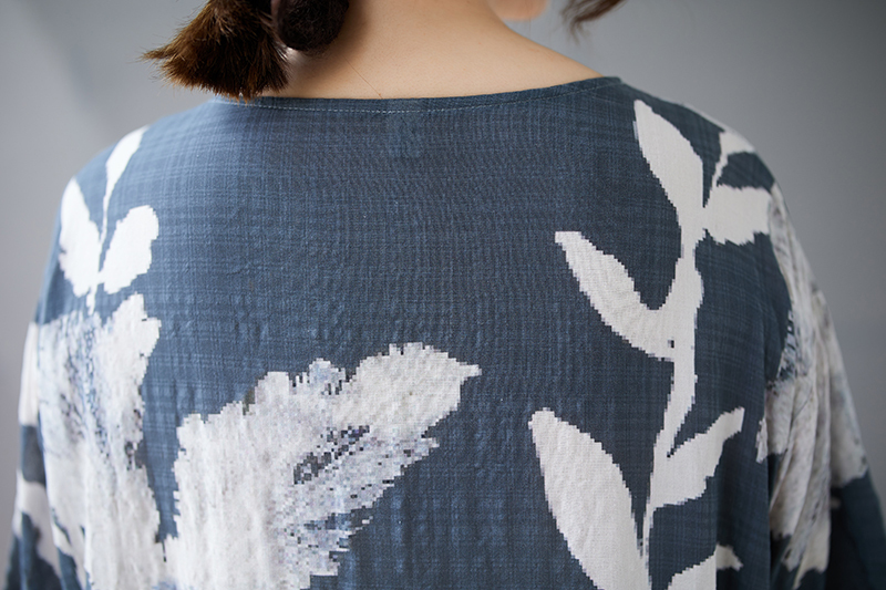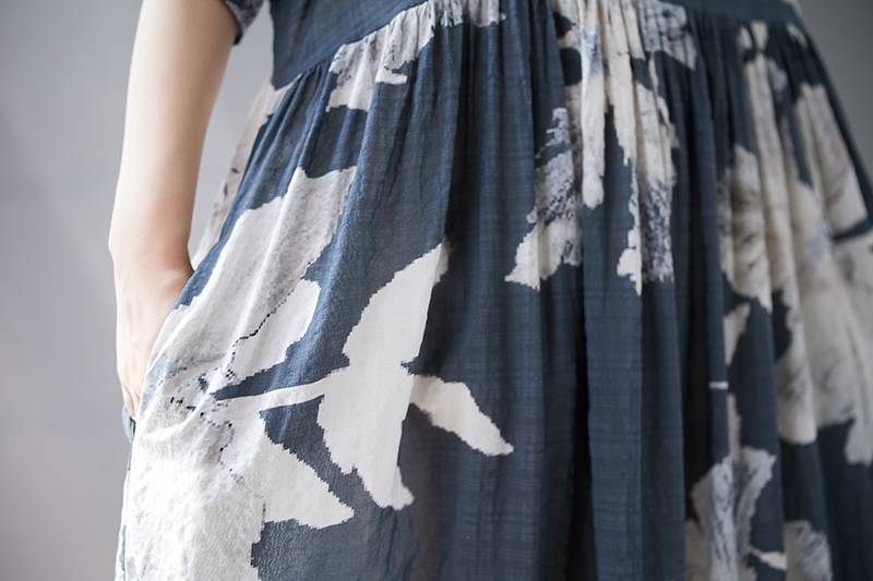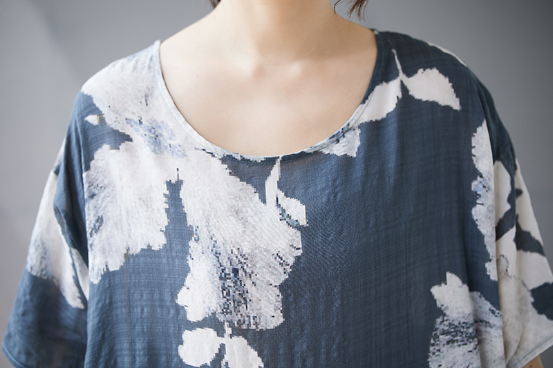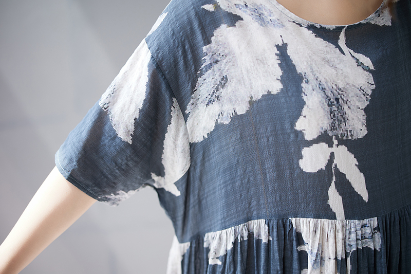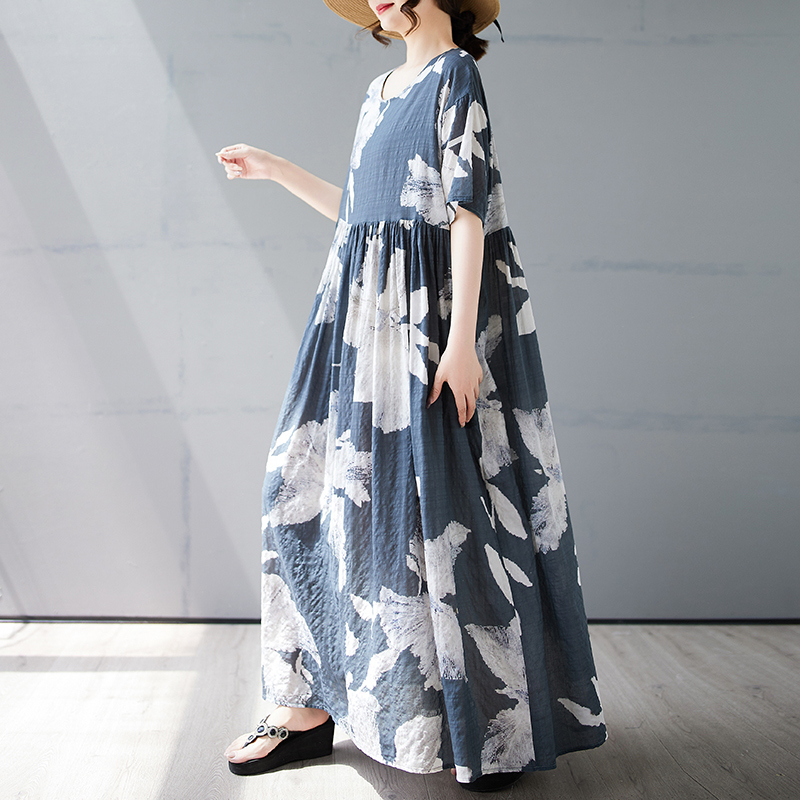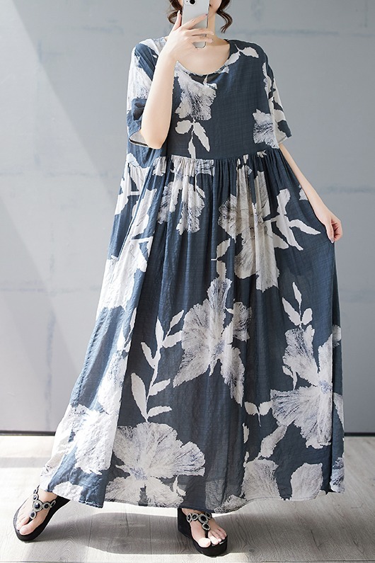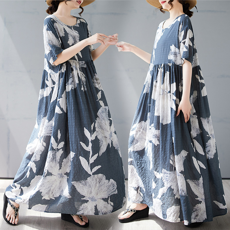 「同梱1万円送料無料」夏*新作*カジュアル*20304050代*ゆったり大きいサイズ*大きい花柄半袖マキシロングワンピース紺系
