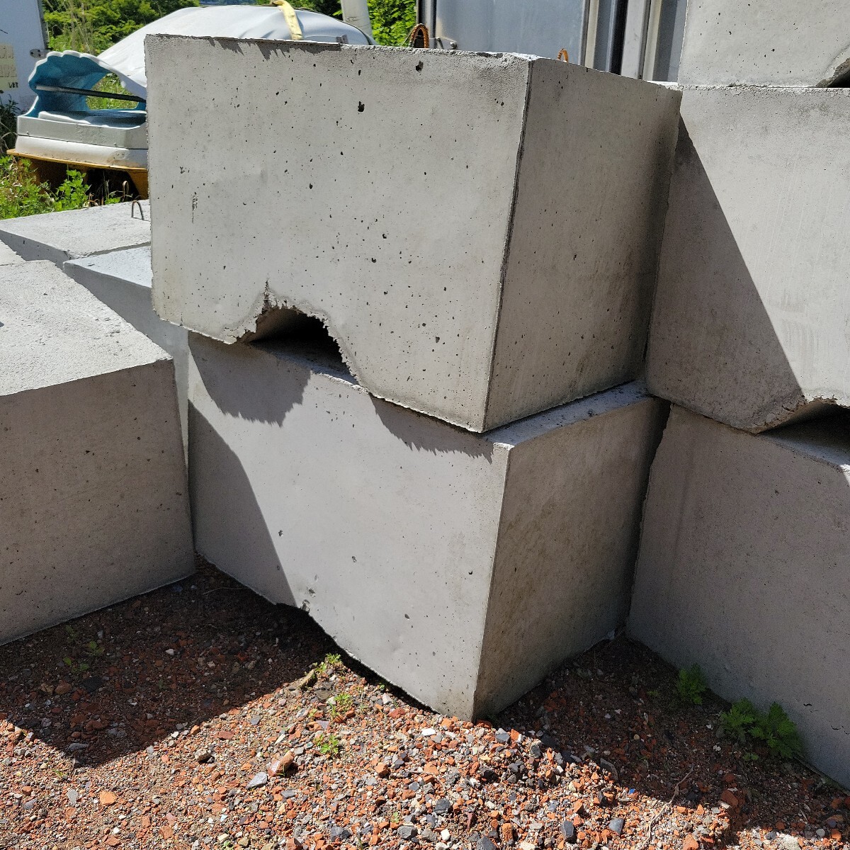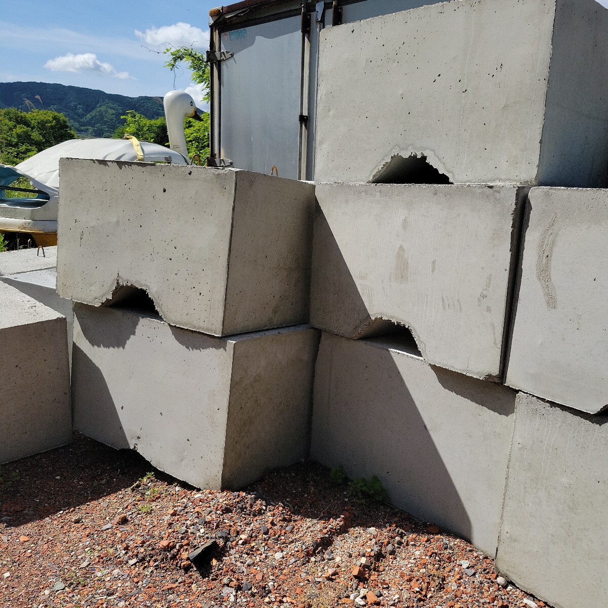 残コンで作ったブロックです。幅62cm 長さ95cm高さ60cm重さ700キロぐらいのブロックです。工場のフェンスや仕切りや独立基礎等いかがですか?使い道いろいろあります。近ければ有料ですが配達も出来ます。少しのカケ等あります。よろしくお願いいたします。