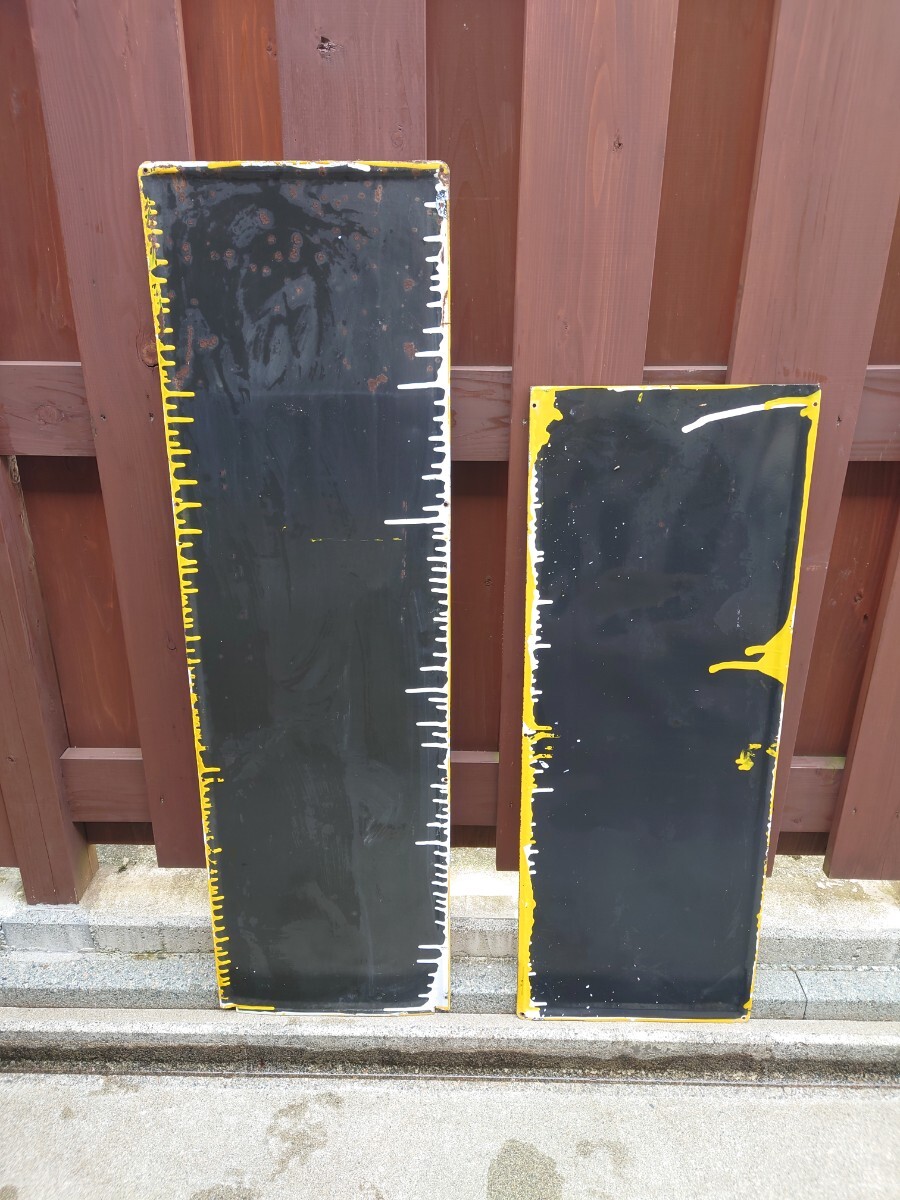 昭和時代の貴重なホーロー看板、「丸石の自転車」特大サイズ(2枚組)です。
