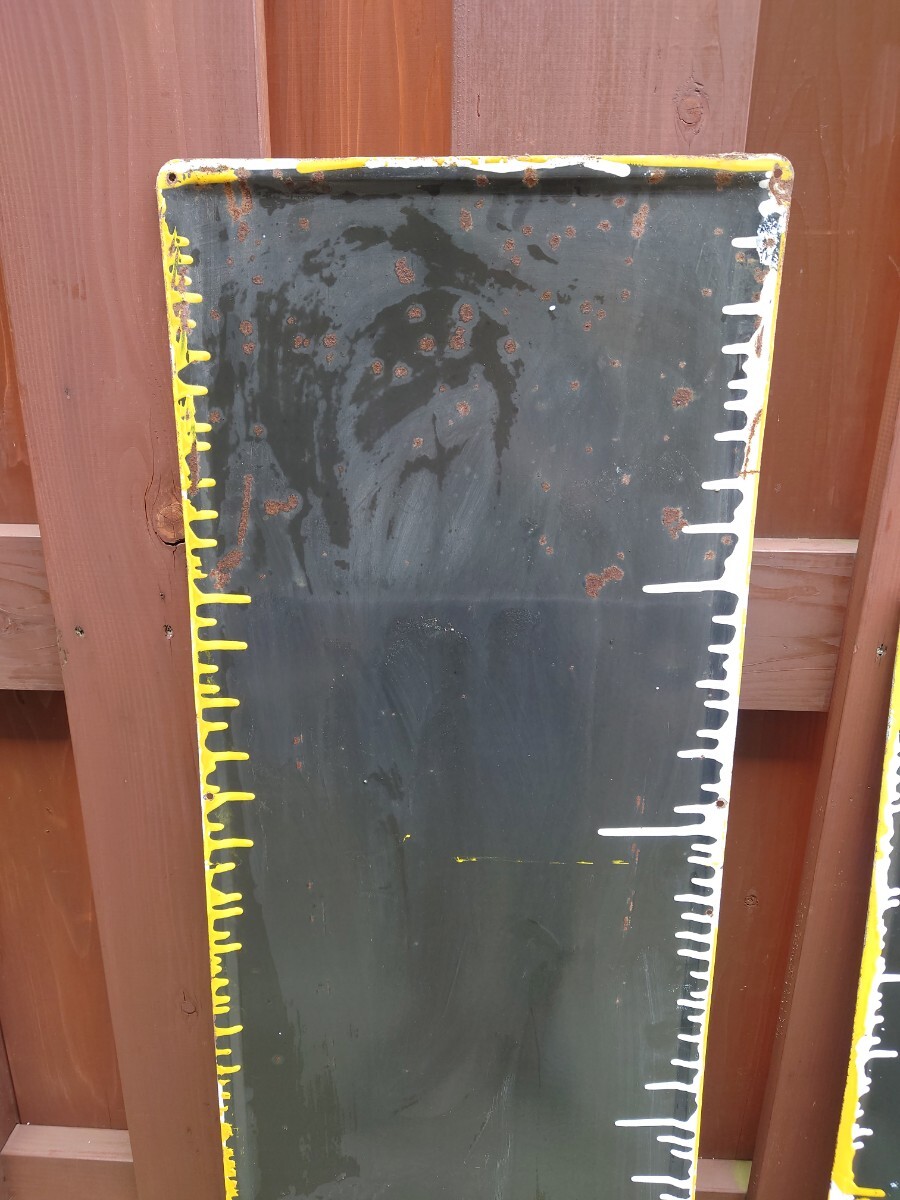 経年によるサビ・塗装の剥がれ・小傷は見られますが、レトロ看板としては比較的良好な保存状態です。詳細は画像をご確認ください。