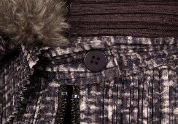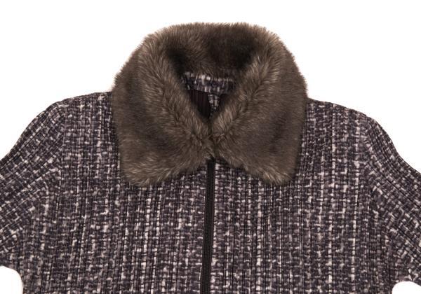 プリーツプリーズPLEATS PLEASE ファー着脱ファブリックプリントジップジャケット 紫他4 |
