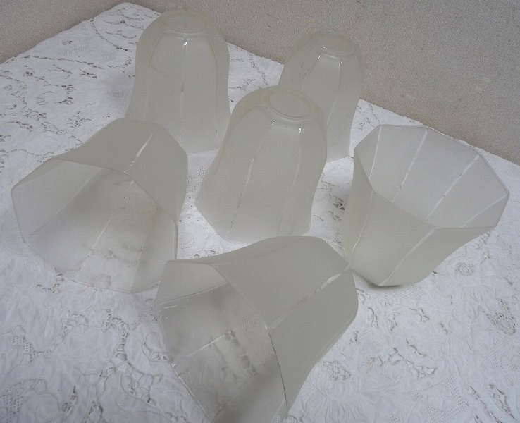 (☆BM)ガラス製 ランプシェードのみ 6点 電傘 すりガラス ホワイト 白 ランプ 素材 部品 パーツ レトロ テーブルスタンド照明