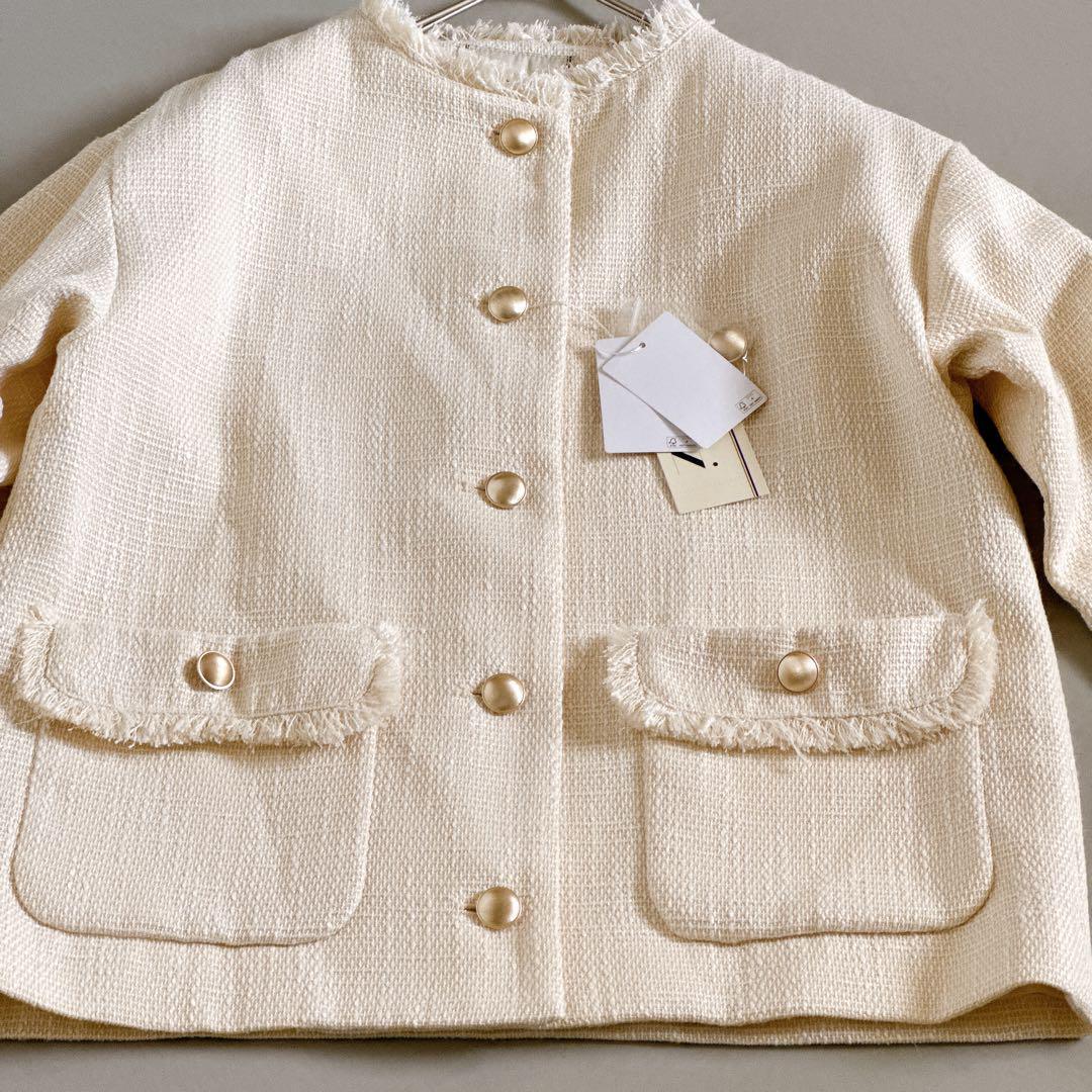 ツイード ジャケット ノーカラー フォーマル きれいめ 金ボタン