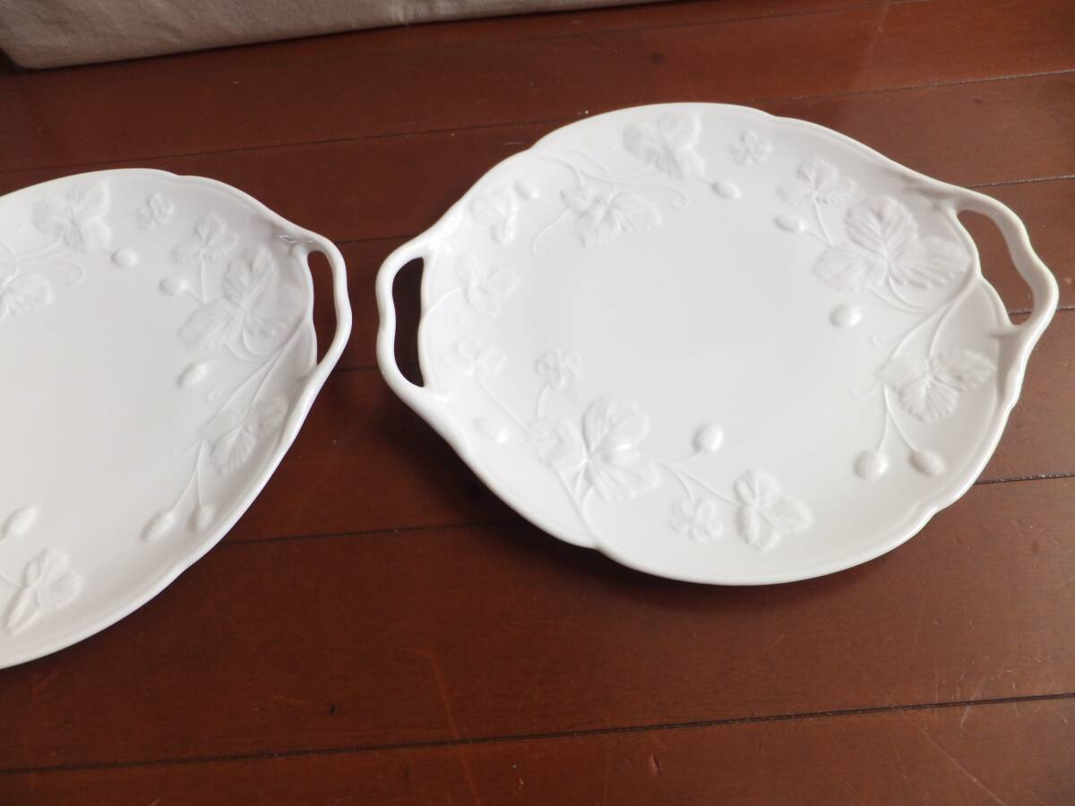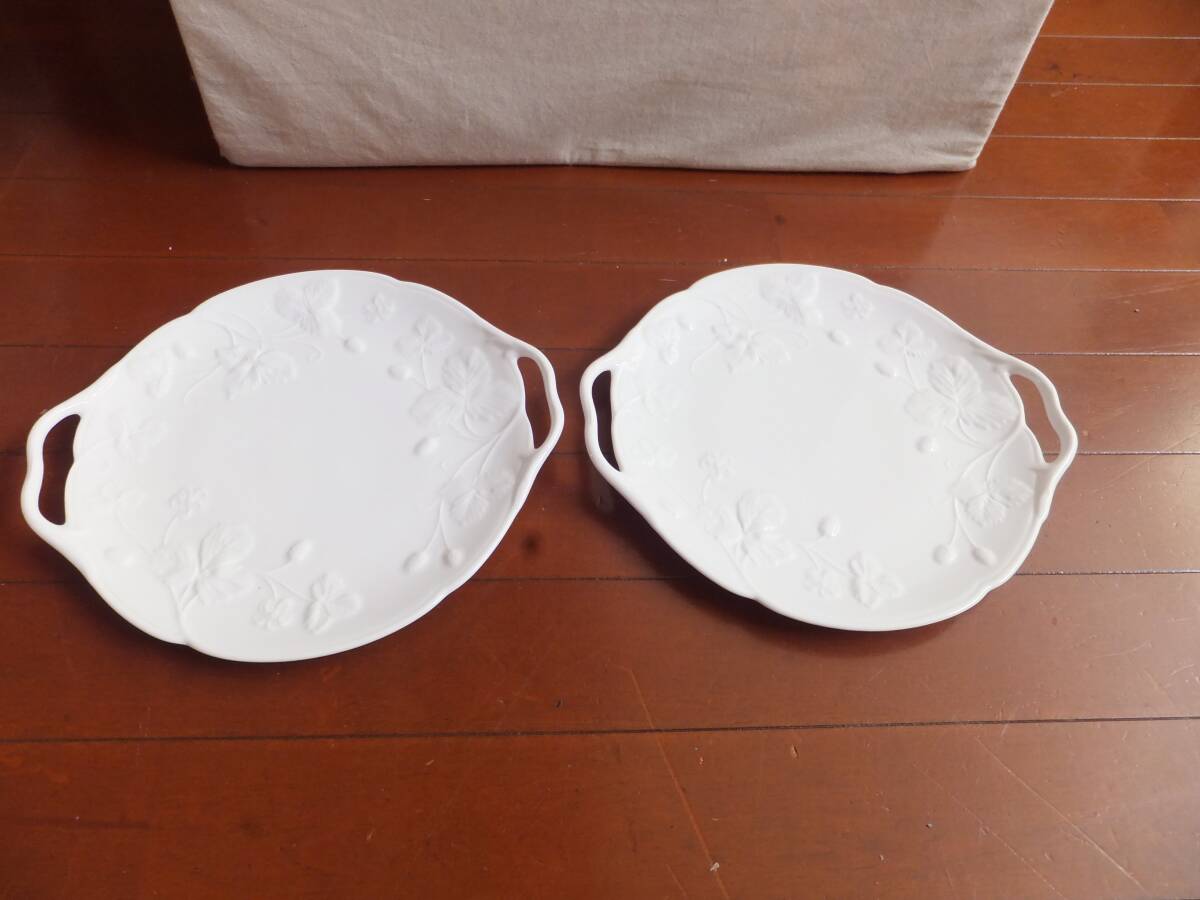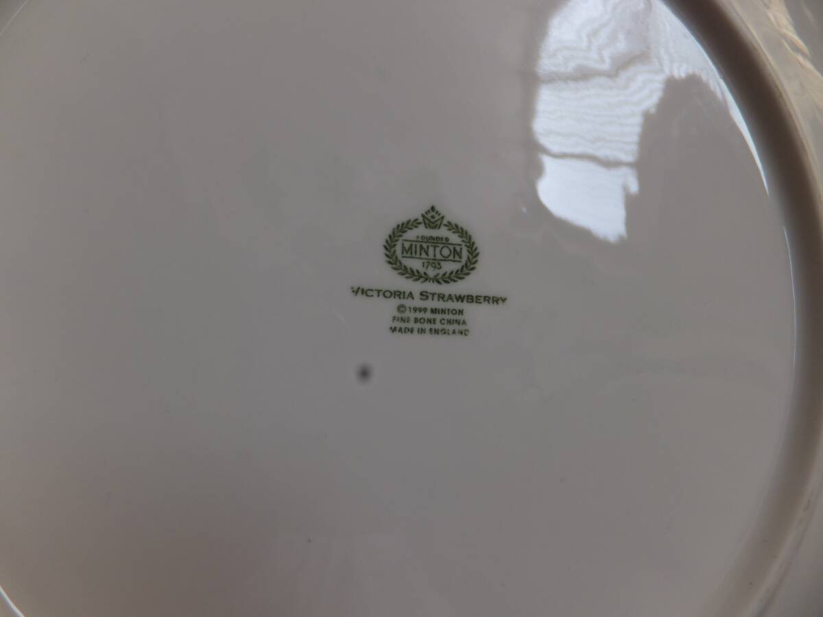 未使用品です。MINTONミントンのイチゴ柄のプレート2枚です。サイズは、27.6×24.5×2.5cm位です。つかうつもりで食器棚に入れていました。少し小傷あります。箱はありません。自宅保管品ですので神経質な方は御遠慮下さいね。ノークレームノーリターンでお願い致します。その他いろいろ出品していますので見て下さいね。