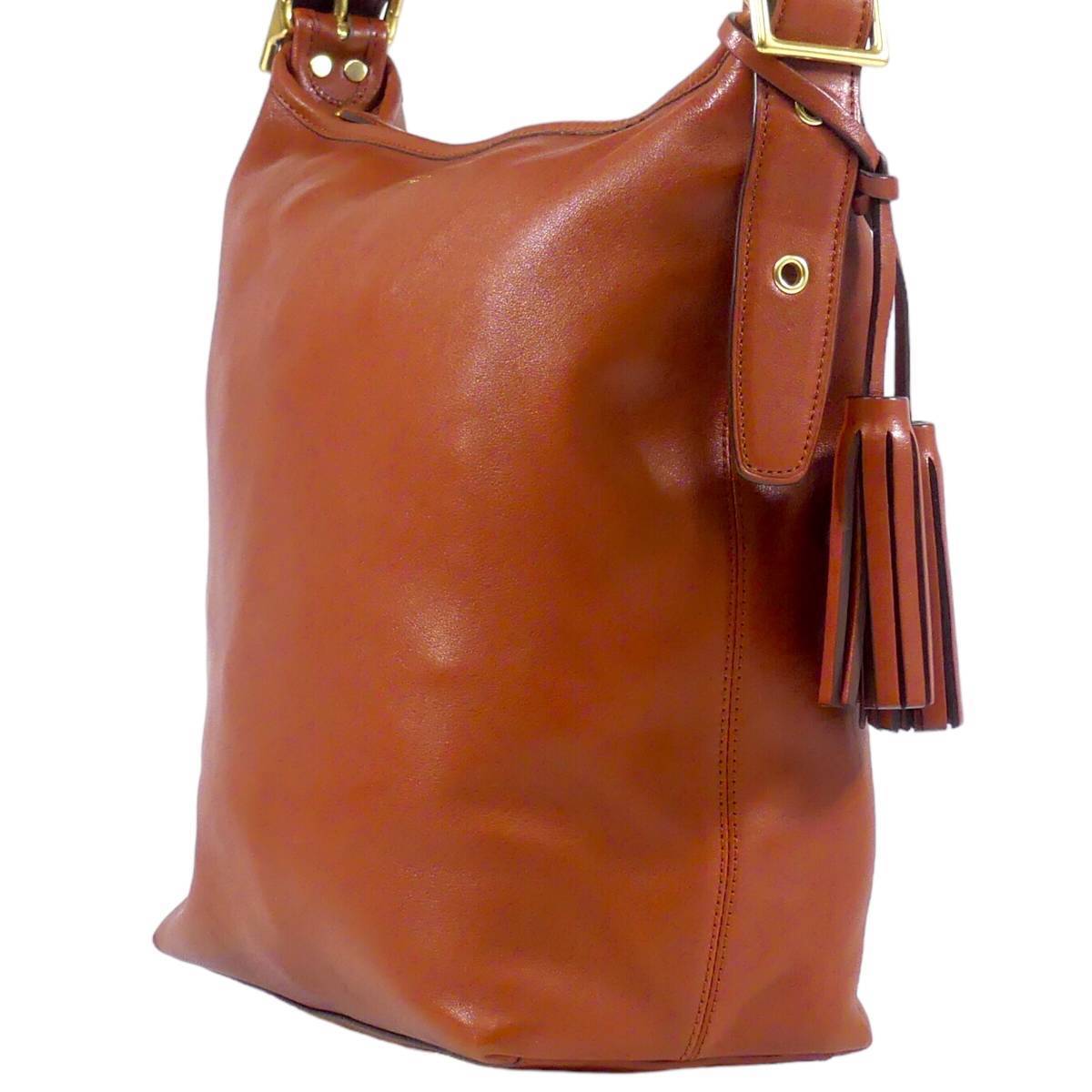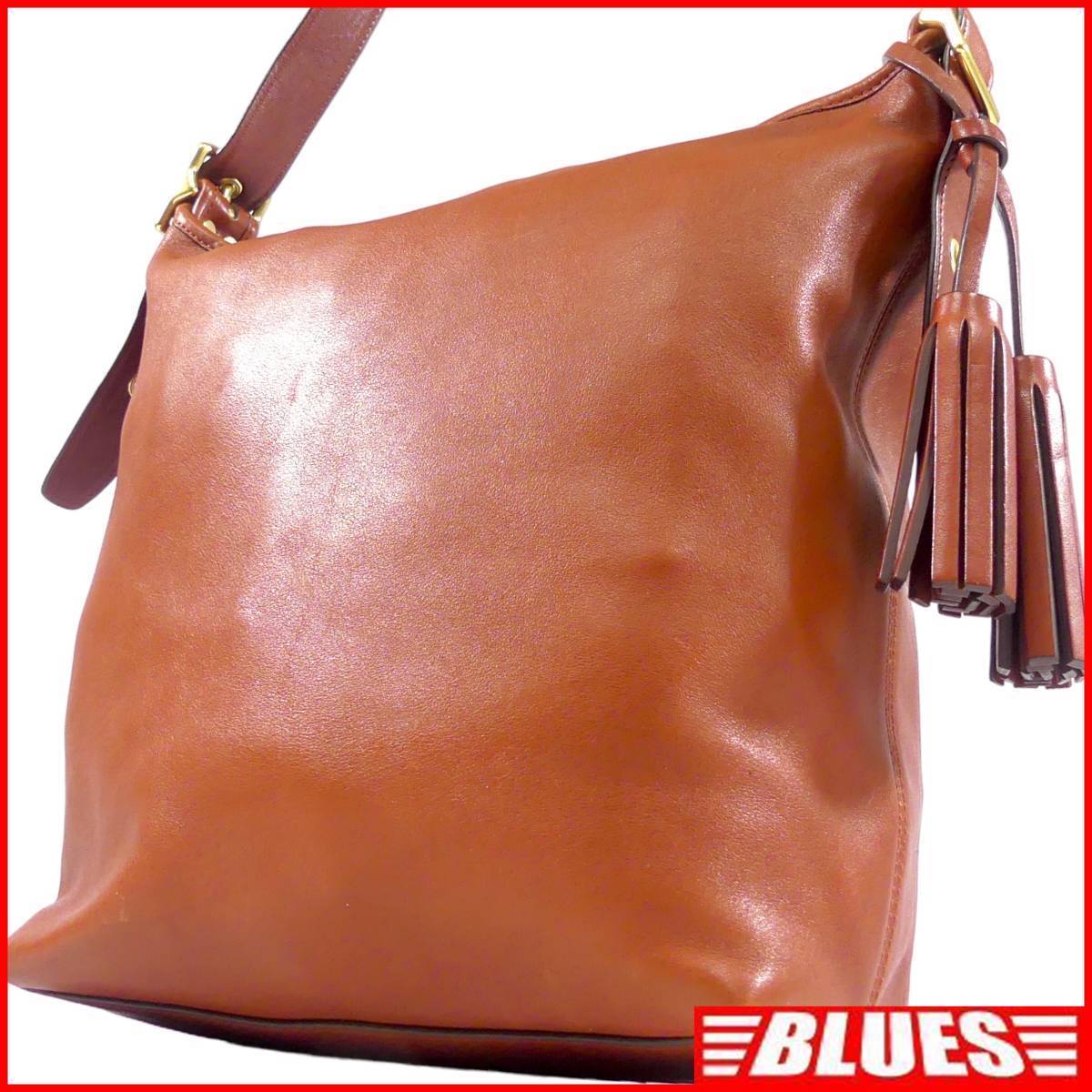 即決★COACH★オールレザーショルダーバッグ コーチ メンズ レディース 茶 本革 肩掛けカバン 斜め掛け 本皮 タッセル