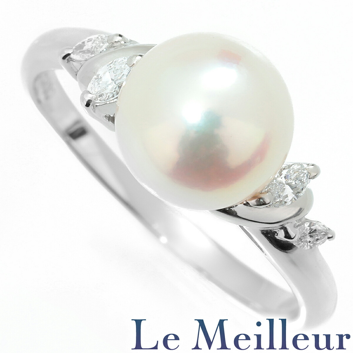 ホワイトにほんのりピンクがかった優しい色合いのアコヤ真珠をあしらった、プラチナパールリングです。アコヤ真珠の脇に添えられた4石のダイヤモンドが、かわいらしさの中にも上品で大人の雰囲気を演出します。普段使いはもちろん、パーティーなど華やかなシーンでもお使いいただけます。自分へのご褒美や、大切な人への贈り物にもおすすめです。