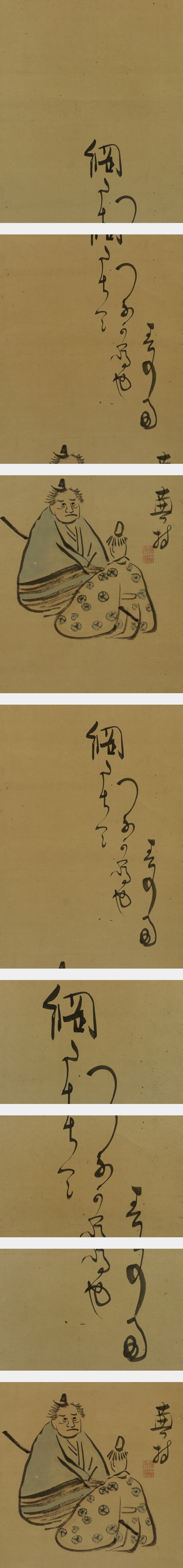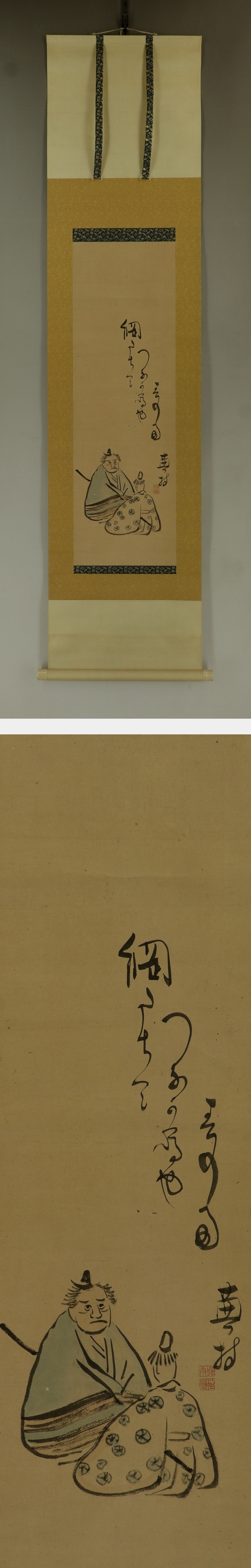 与謝蕪村 よさ-ぶそん(1716-1784) 江戸時代中期の俳人,画家。 享保元年生まれ。20歳ごろ江戸に出て早野巴人(夜半亭宋阿)に俳諧を学ぶ。 師の死後は関東,奥州を遊歴し,宝暦元年京都に移る。 写実性,浪漫性,叙情性に富む俳風で中興期俳壇の中心的存在となる。 画家としては文人画を大成,代表作に池大雅との合作「十便十宜図」がある。 天明3年12月25日死去。68歳。 本紙は、染み、汚れ、折れ、皺があります。 表装は、染み、汚れ、皺、虫食い、ほつれ、くすみがあります。 【サイズ】 作品 横約27cm×縦約87cm 表装 横約40.5cm×縦約171cm |