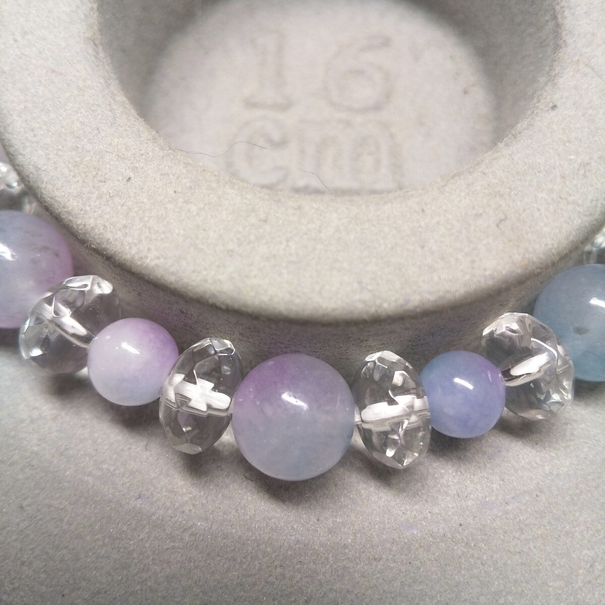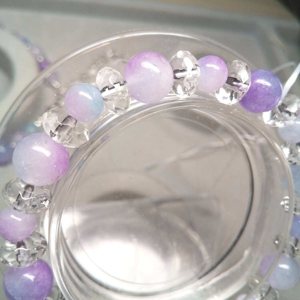 初夏の藤の花や、紫陽花の花のような、マルチカラージェードのサイズ違いデザインブレスレットです。