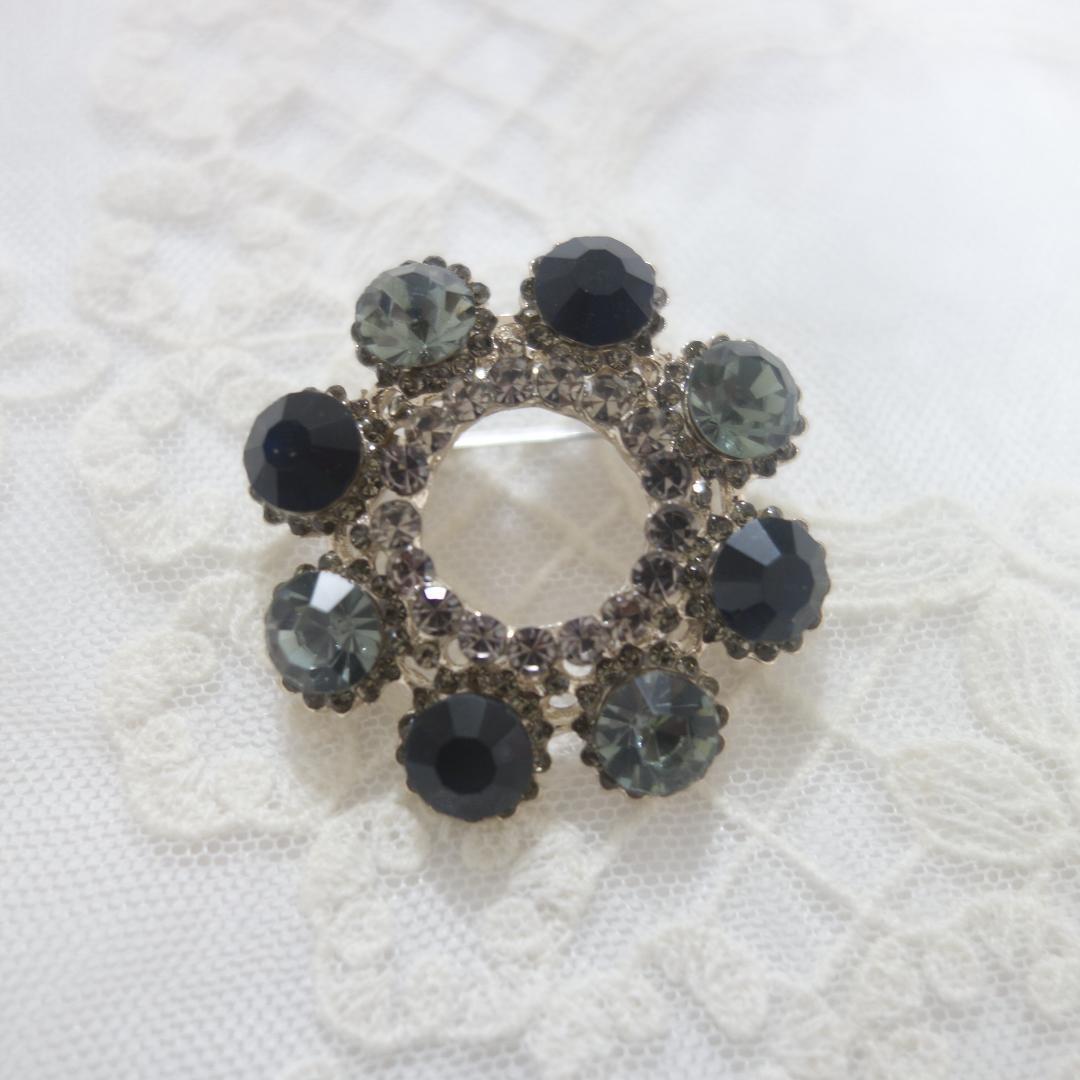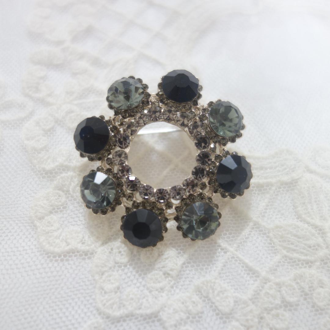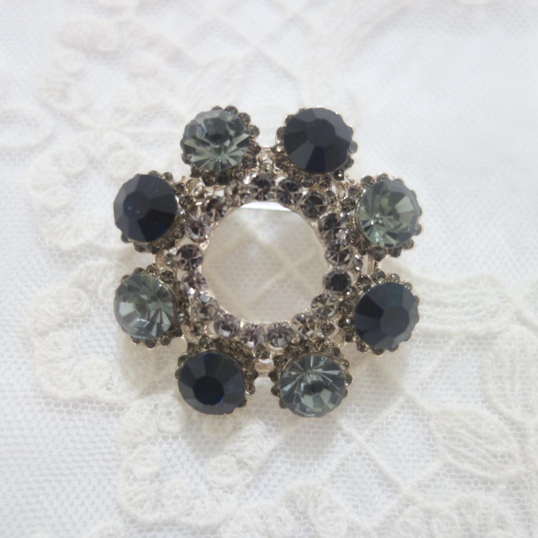 シックなサファイア色、薄いブルーにグレーが混じったような絶妙でお洒落なお色、シャンパングレーのラインストーン♪
