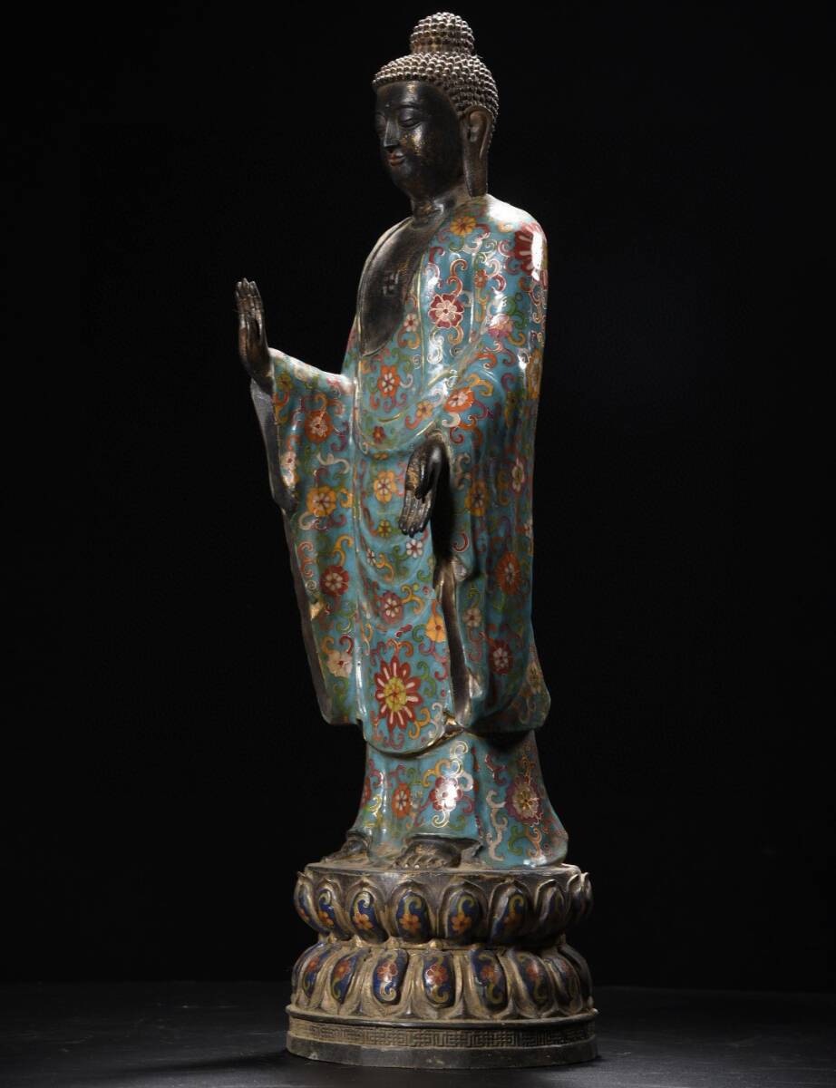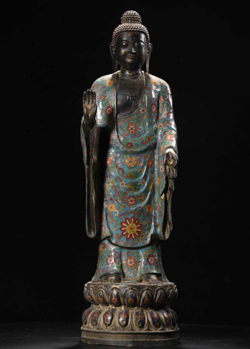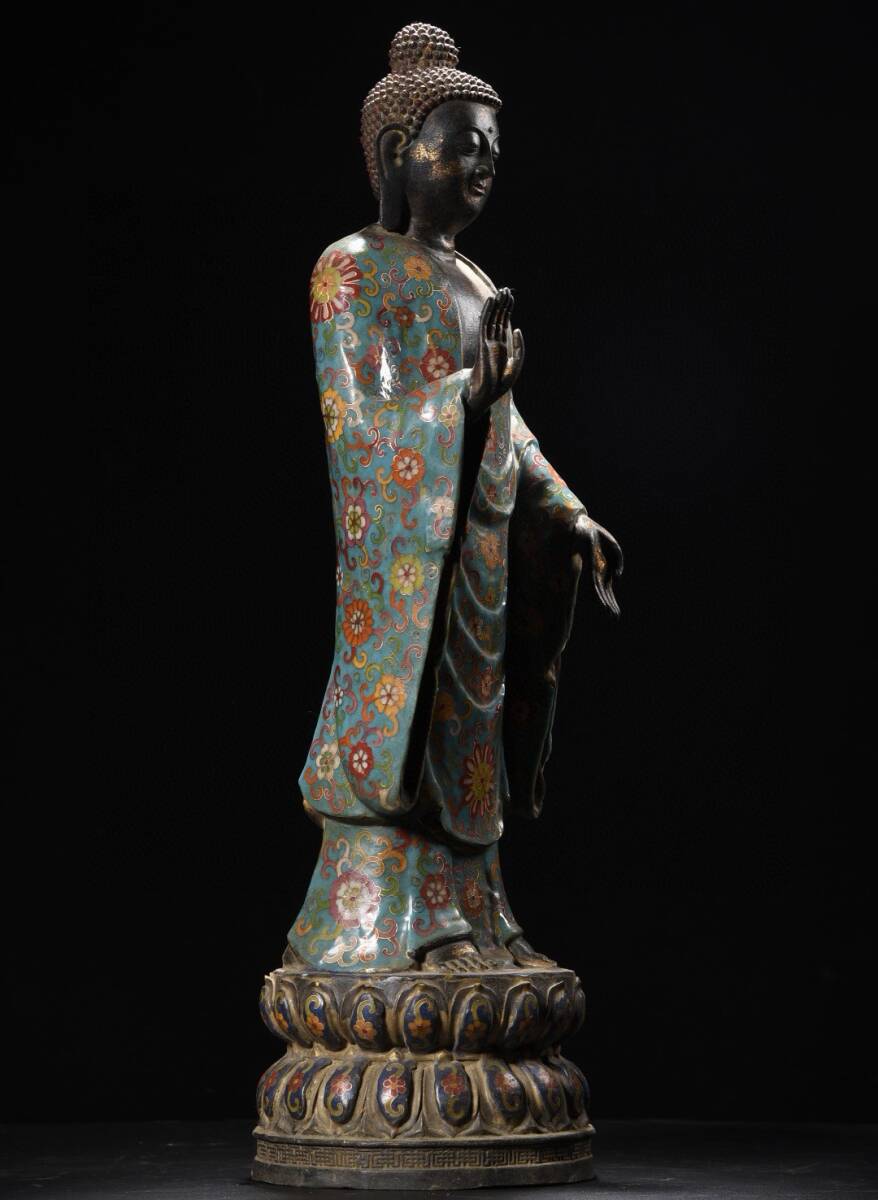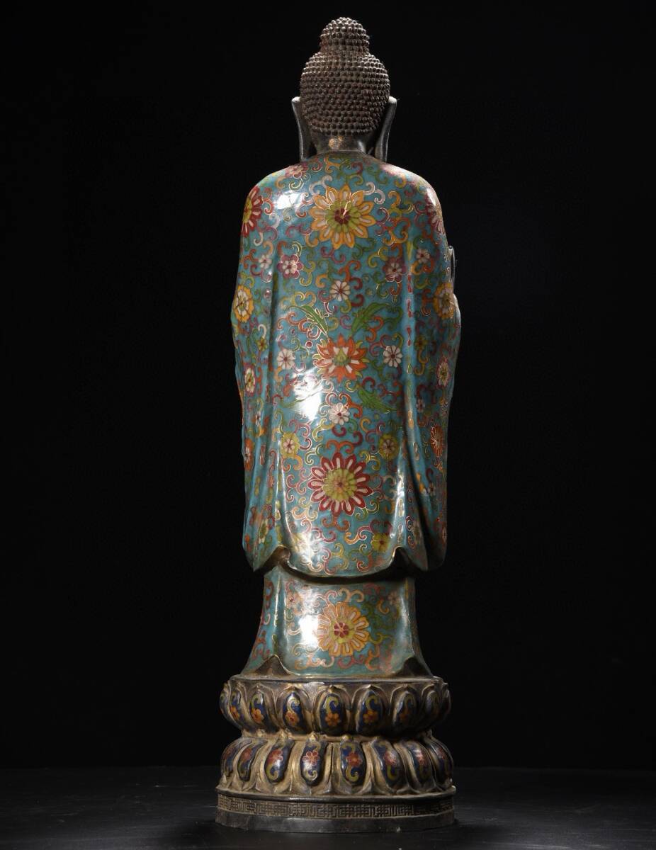 旧蔵 清 大判景泰藍 阿弥陀仏 造像 仏像 奉納されていた 供養品 極細工 中国古玩 古董品 古美味 205-20