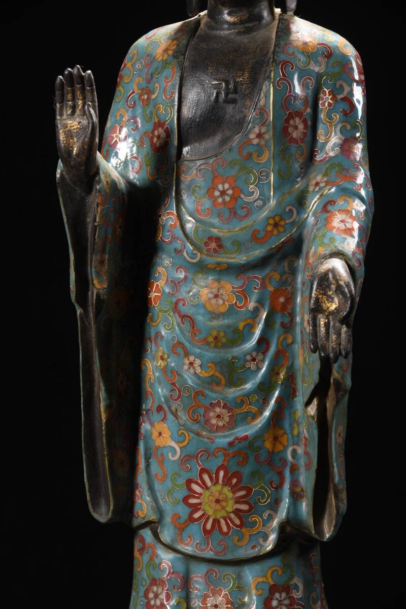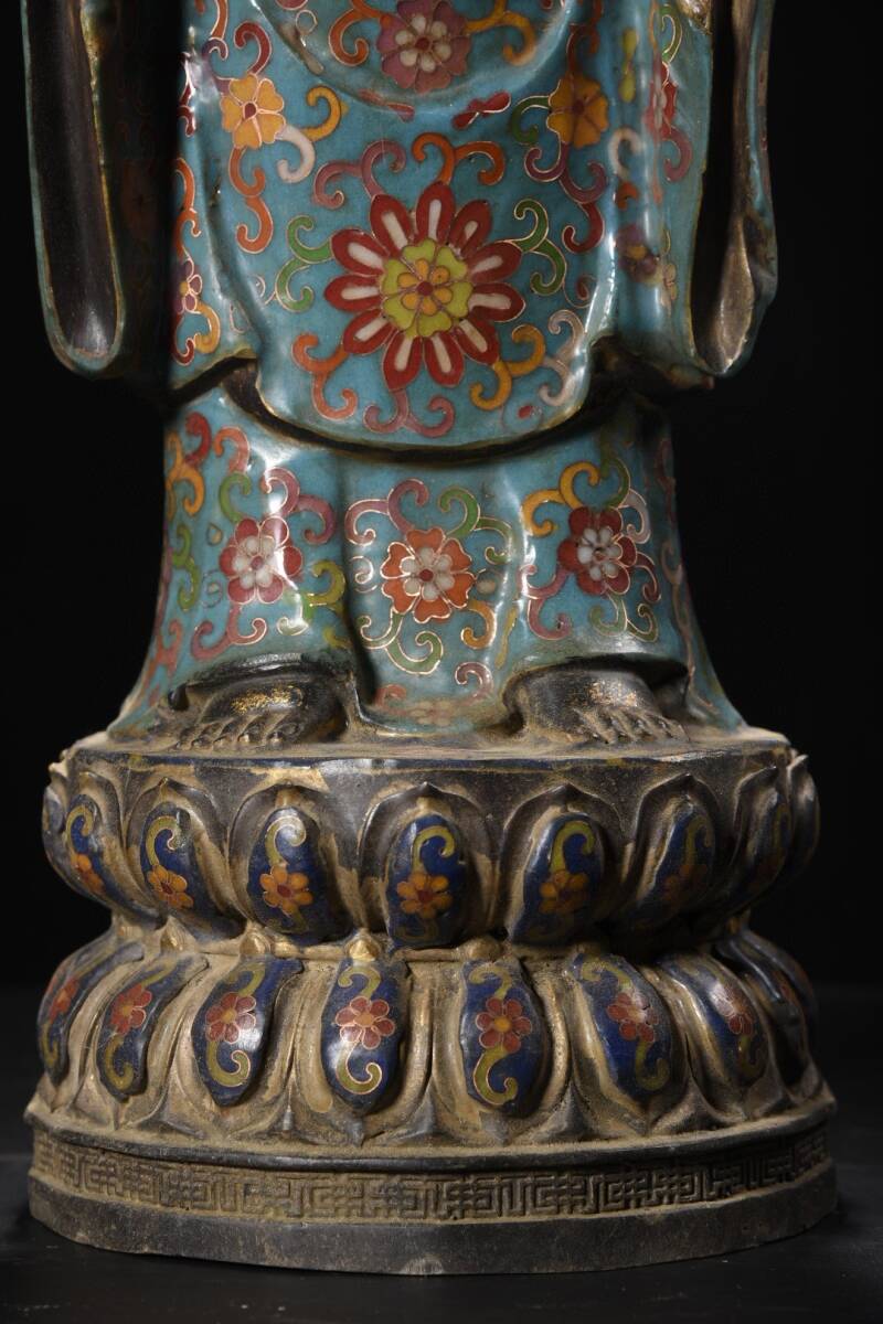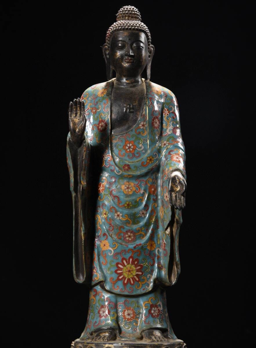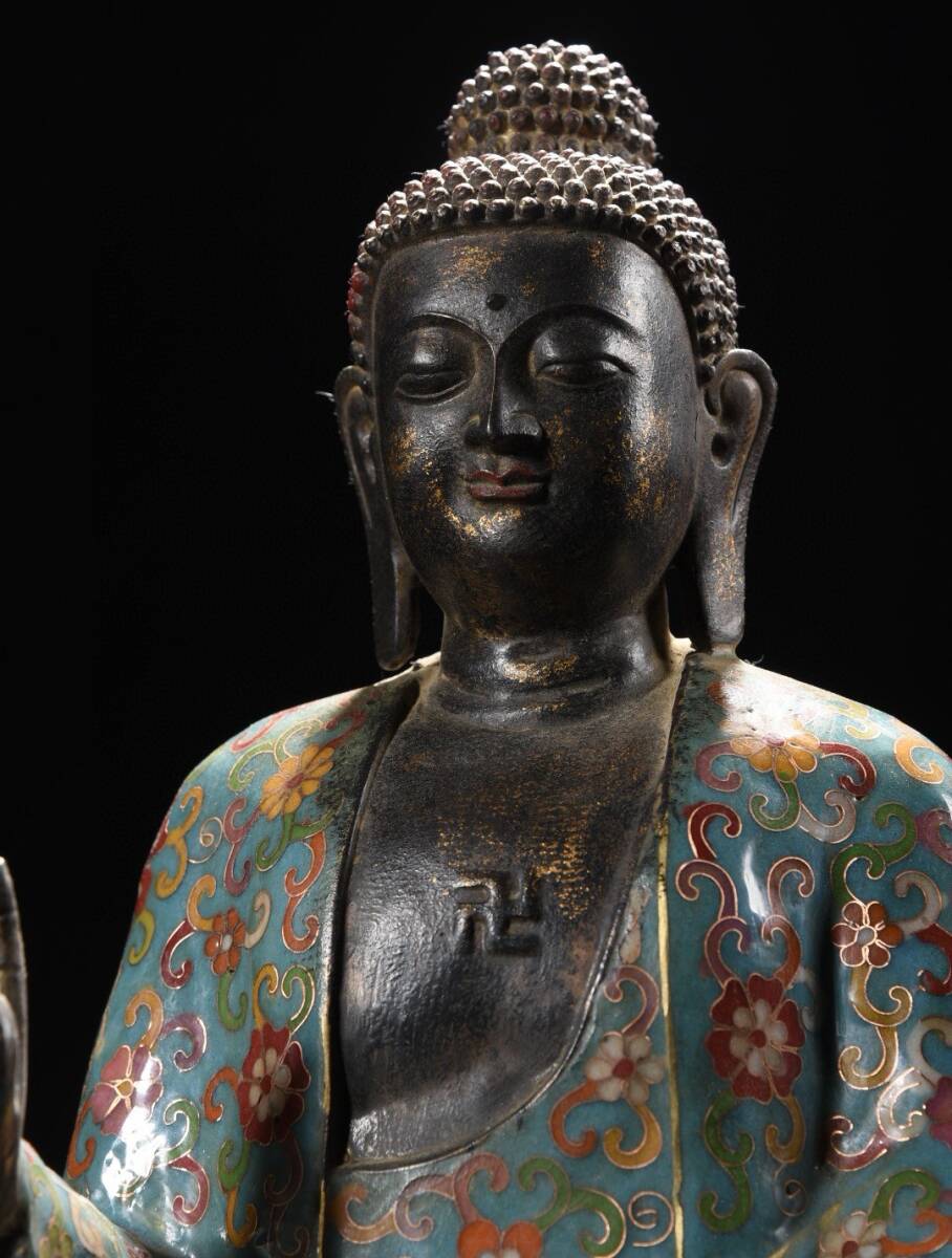 旧蔵 清 大判景泰藍 阿弥陀仏 造像 仏像 奉納されていた 供養品 極細工 中国古玩 古董品 古美味 205-20
