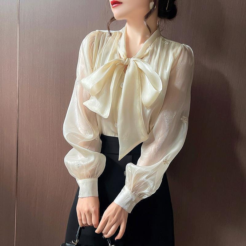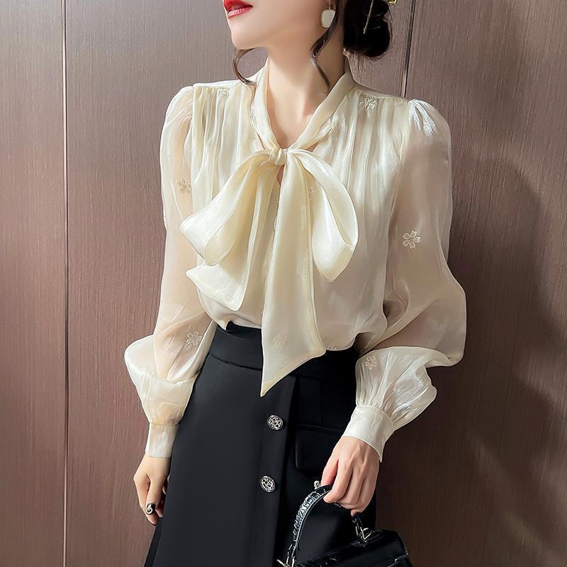 新入荷新品春 シャツブラウスレディース 20代30代40代 女性 光沢 長袖 つるつる
