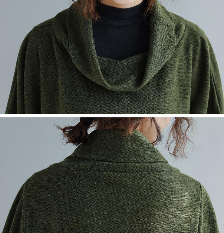 大人気フリーサイズ 新品チョ型チュニックワンピ秋 ゆったり大きいサイズタートルネックがかわいいポン グリー お色選択可