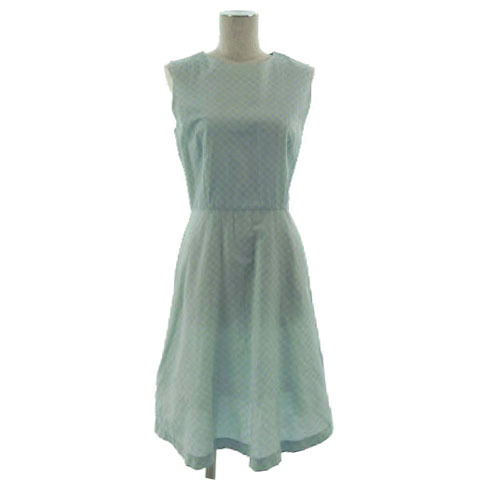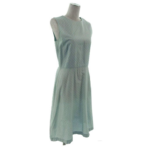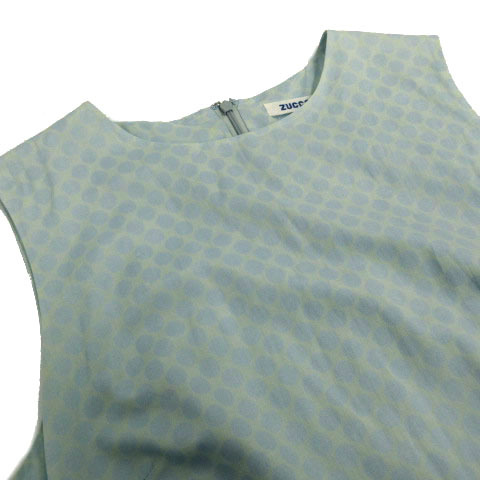 ズッカ zucca ワンピース ノースリーブ ミディ丈 コットン混 ドット グリーン系 緑系 ブルー系 青系 M レディース