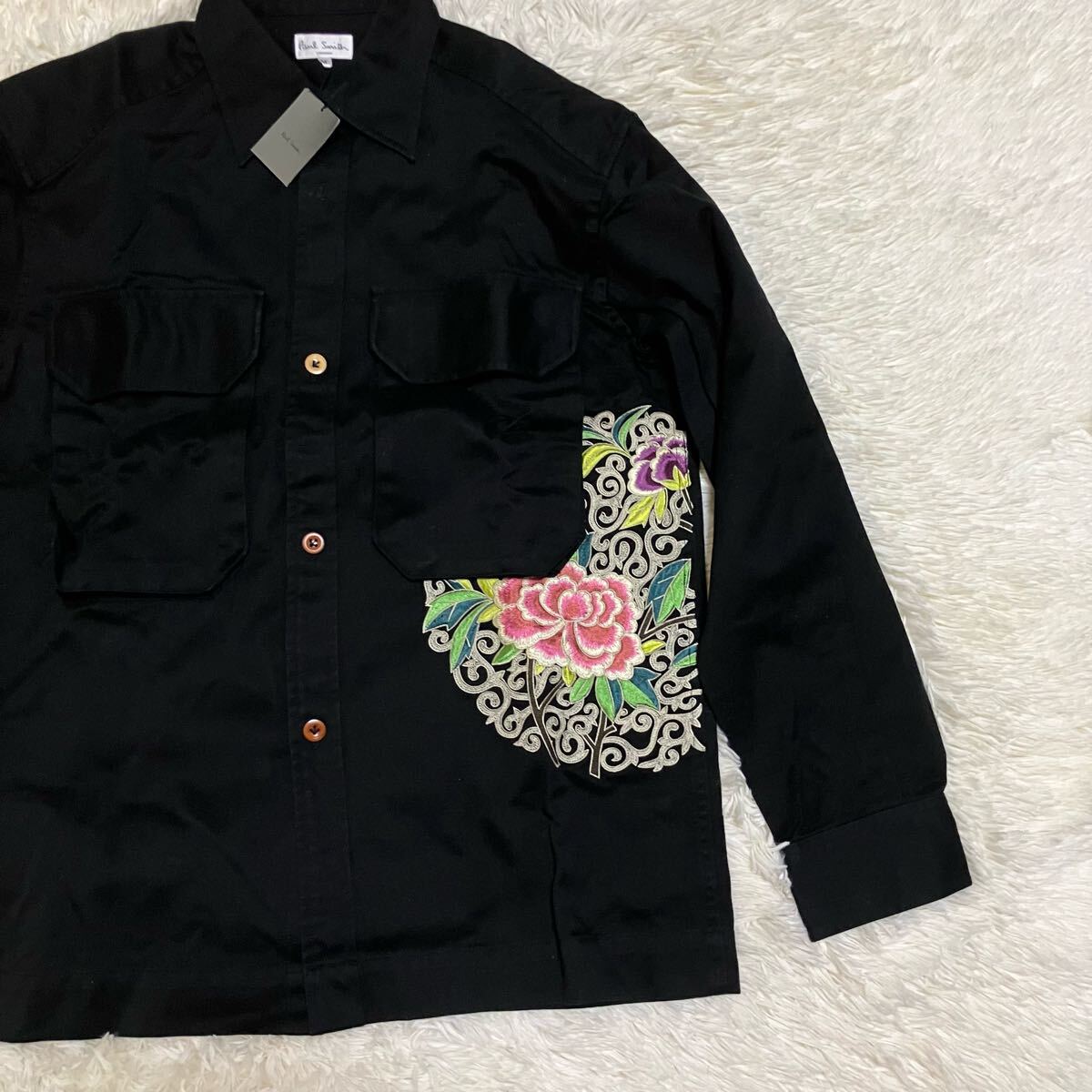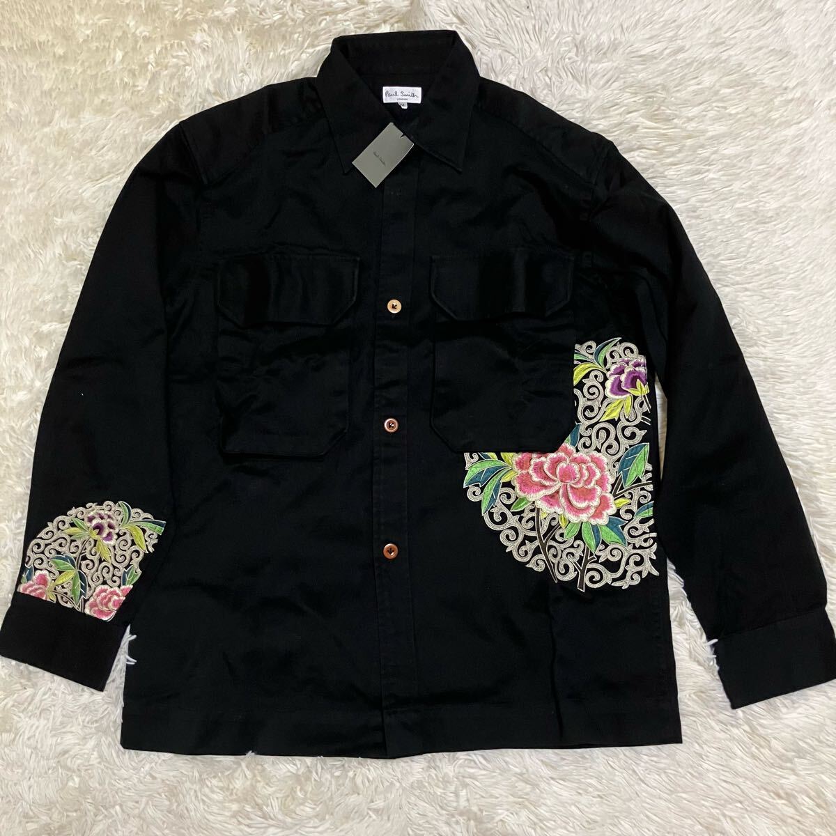 ポールスミスのシャツジャケットです。刺繍で花柄ぎデザインされており、しっかりめの生地感で、高級感があります。お色もブラックで使いやすいかと思います。未使用タグ付き品です。