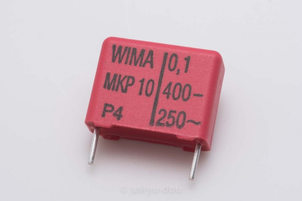 WIMAがオーディオ用のフィルムコンデンサとして推奨しているのは、誘電体にポリプロピレンを使用しているもので、静電容量範囲の小さな型式から順に、FKP02、FKP2、FKP3、MKP4、MKP10です。MKSシリーズは、誘電体にポリエステルを使っているので、電源制御用での推奨です