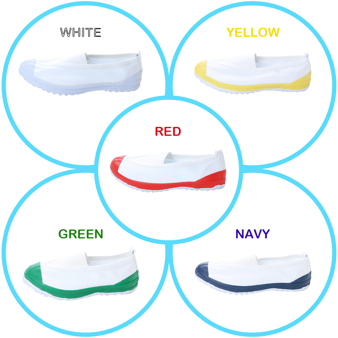 5色x20サイズ、豊富なバリエーションで展開している、三角ゴムタイプの上履きです。