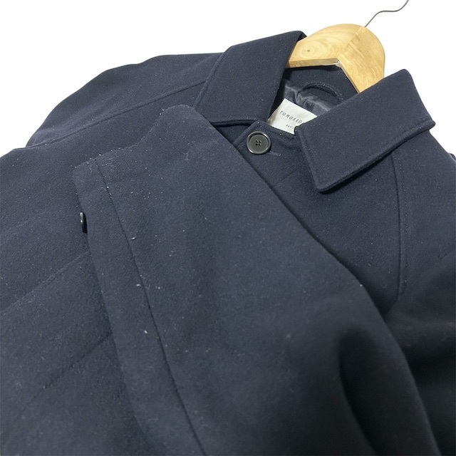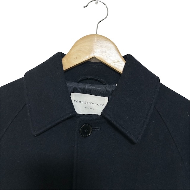 トゥモローランド TOMORROWLAND ステンカラーコート 長袖 ウール 無地 紺 ネイビー S メンズ