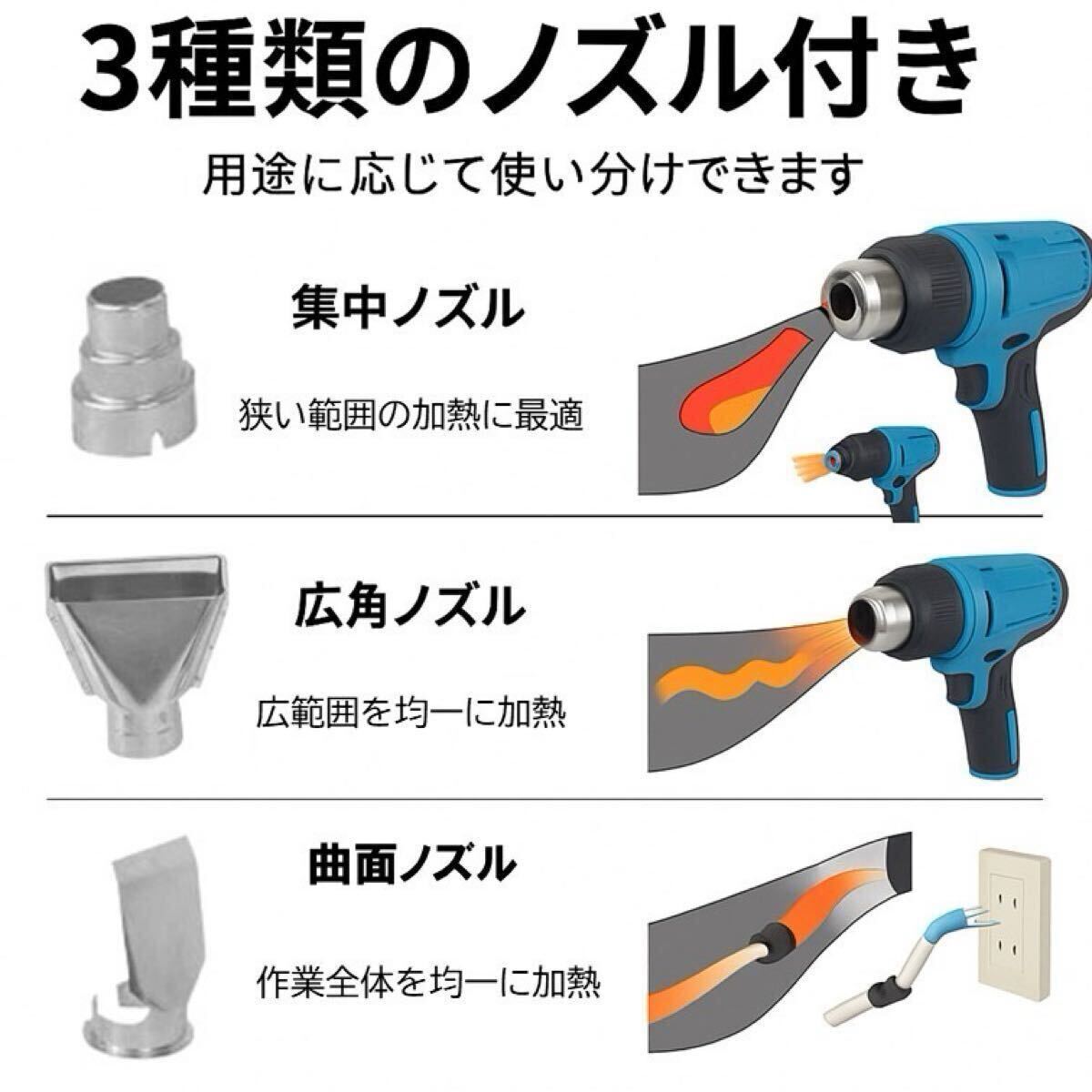 ・3種類のノズル付き:集中・広角・曲面に対応し、様々な作業に使い分け可能