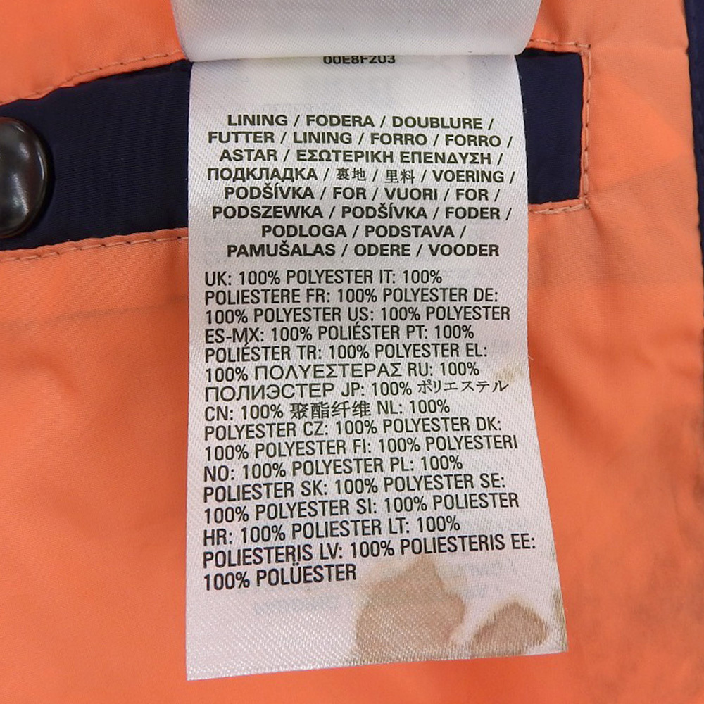 内側詳細:襟やフードフチにスレやヨゴレ、身頃や素材表記タグにシミやヨゴレ、袖口リブ部分にスレや毛玉があります。