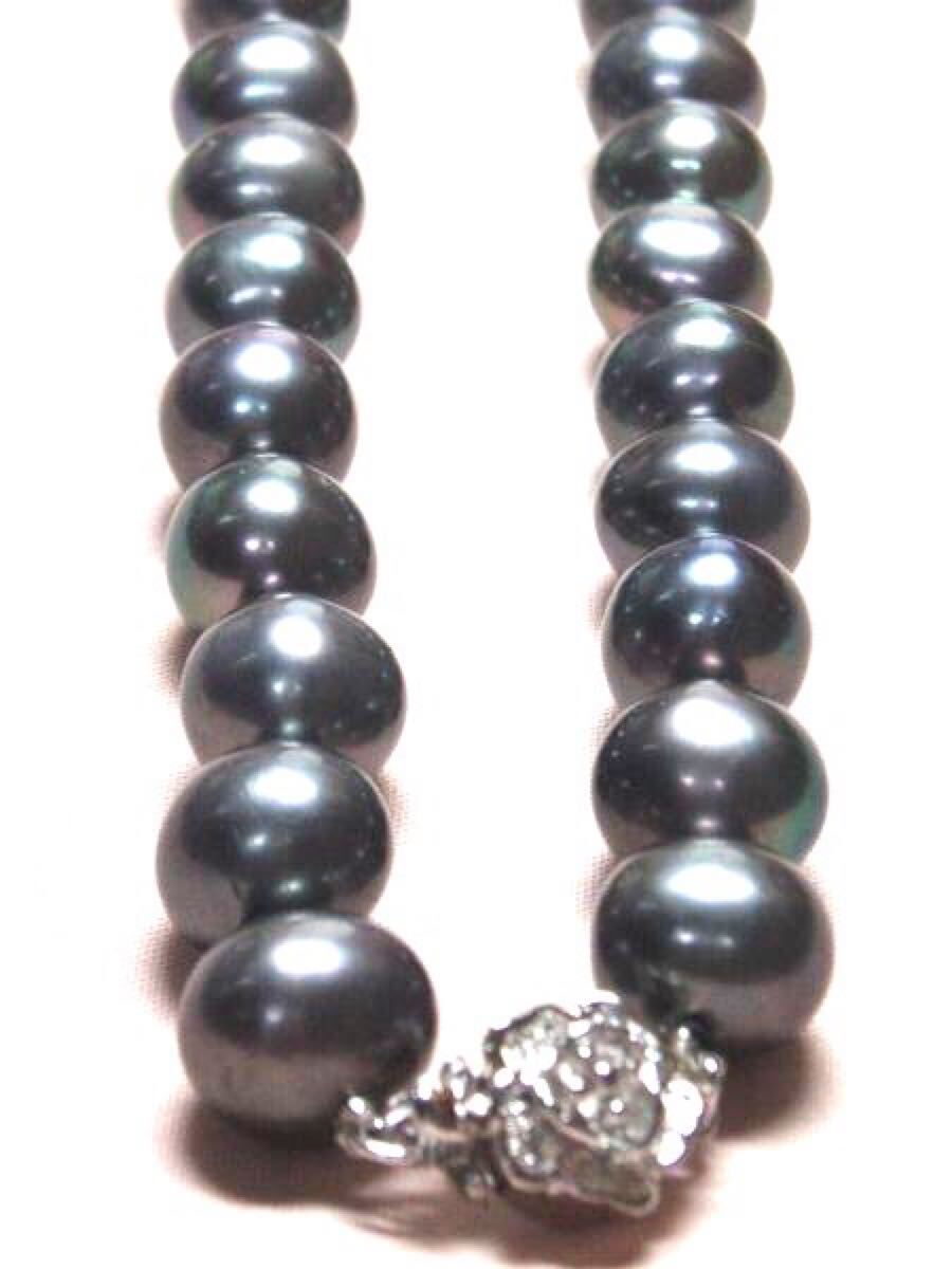 淡水パールは核がないため、丸い近い形で育つものは非常に稀。バロック型といわれる、いびつな形のものが一般です。しかも7-9mmの大きさになるまでは5~6年もの長い年月がかかります。約8年もかかる10mm玉となる と、1万個にひとつしか出来ない稀少な名品です。