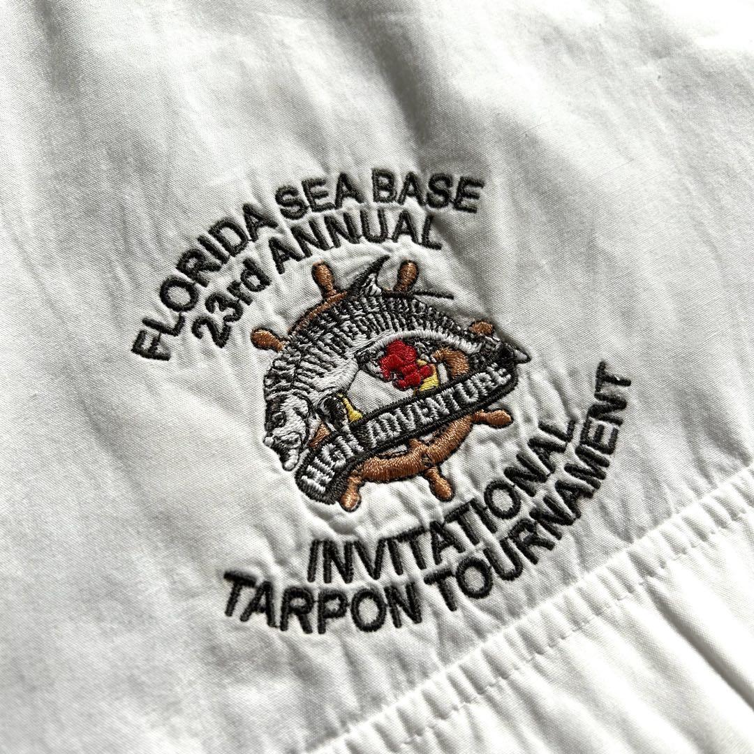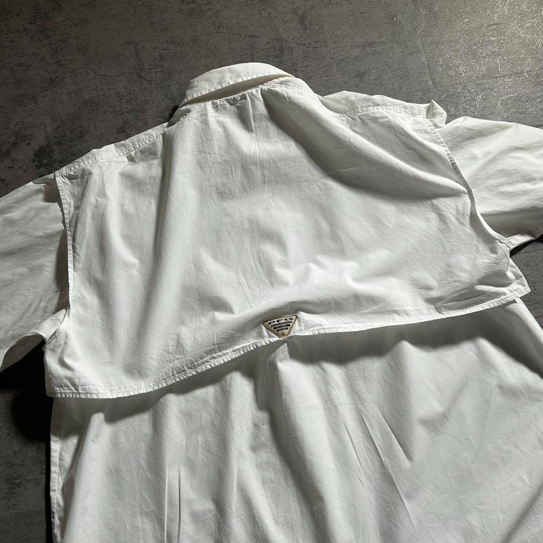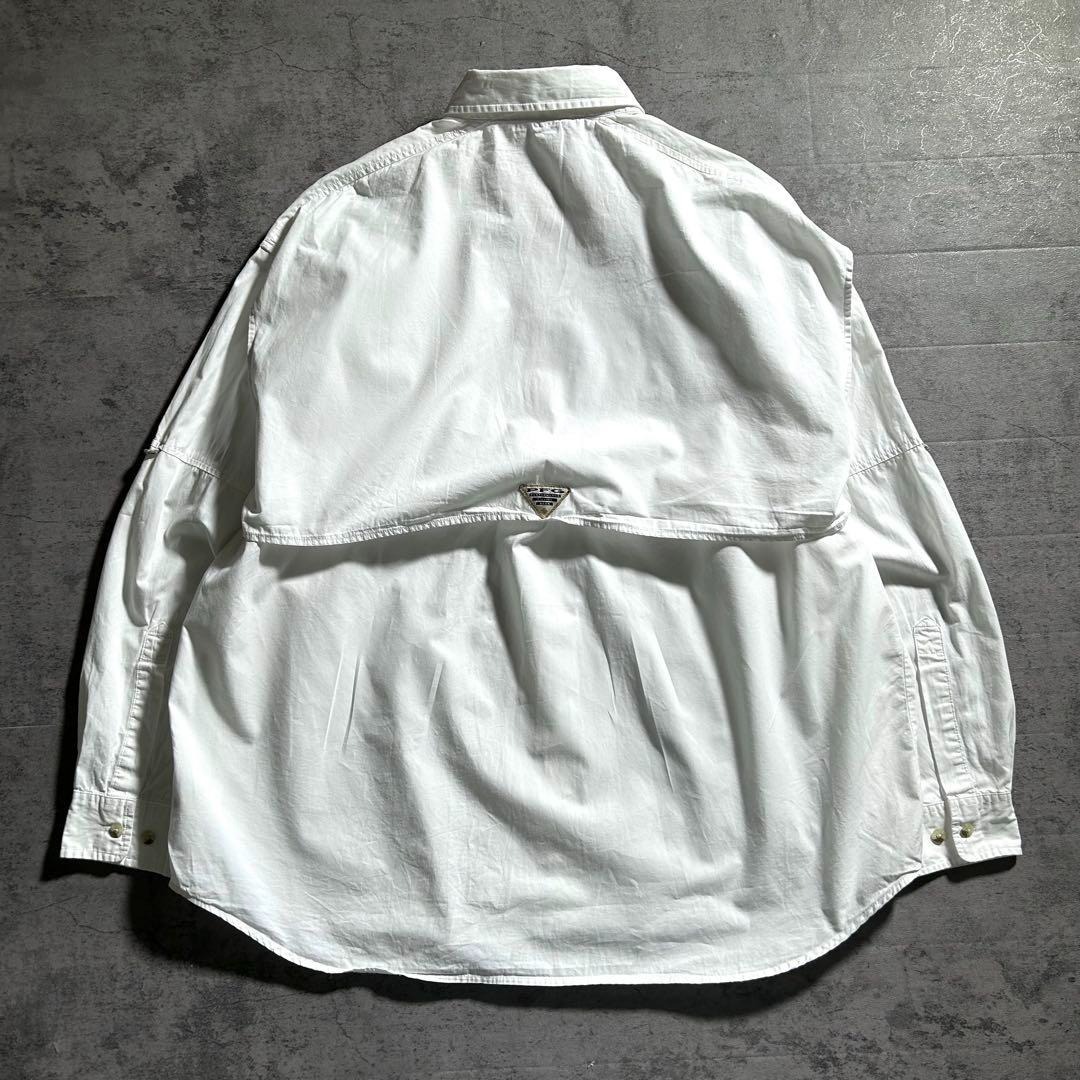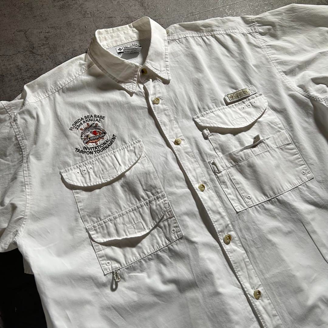 コロンビア Columbia PFG 長袖 フィッシングシャツ 魚 刺繍ロゴ ホワイト 白 メンズXL 00s 古着 / A3081