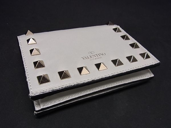 ■新品同様■ VALENTINO GARAVANI ヴァレンティノ ガラヴァーニ レザー ロックスタッズ 二つ折り 財布 ウォレット グレー系 AQ3199