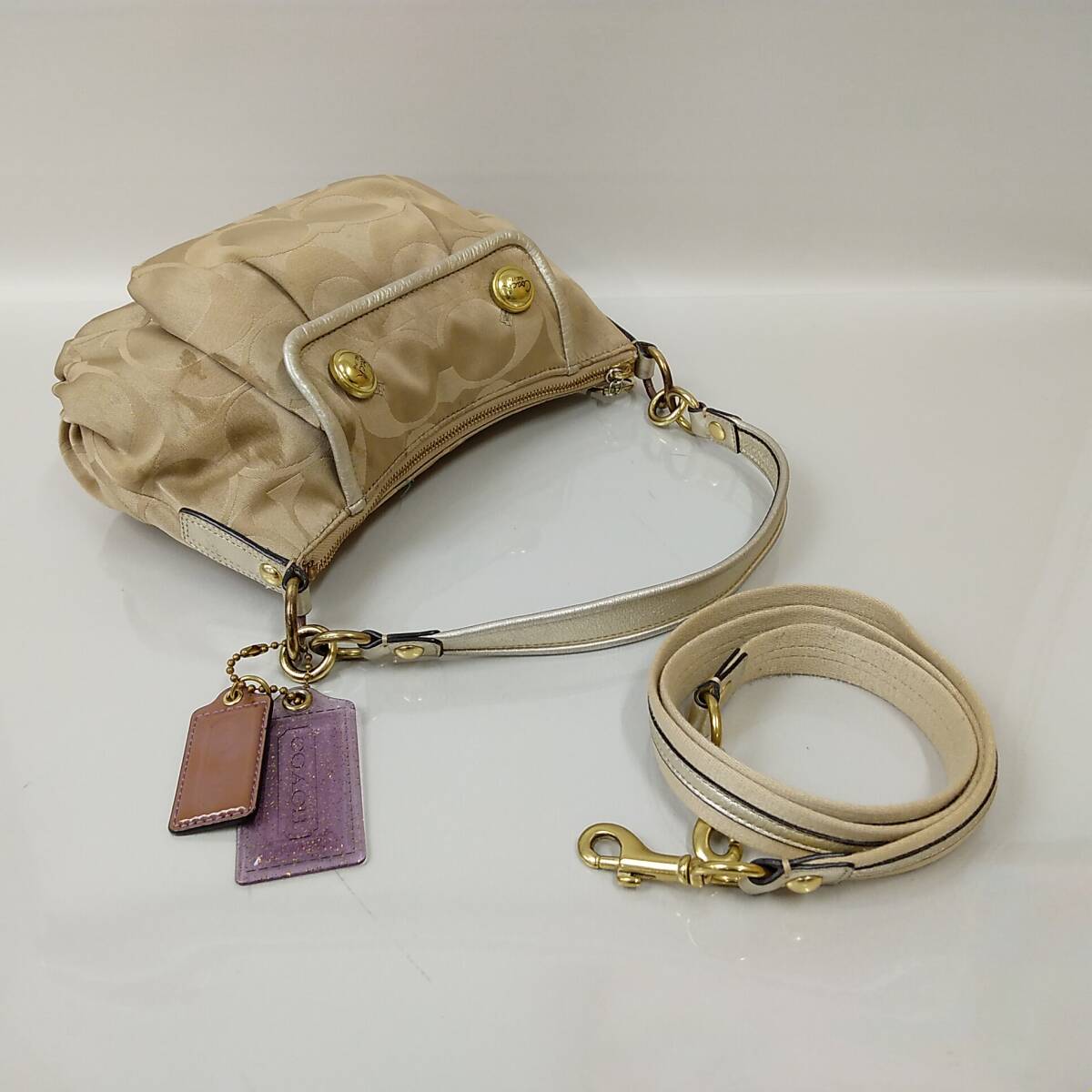 73B260| 【 ブランド名 】COACH コーチ 【 アイテム名 】シグネチャー 【 カテゴリ 】2WAY ショルダーバッグ 【 素材 】キャンバス 本革 レザー 【 カラー 】シャンパンゴールド 【 その他 】- 【 付属品 】ロゴチャーム,ストラップ 【 サイズ 】(cm) ※実寸値 縦×横×幅:14×26×11 ハンドル:43 ショルダーストラップ:116/調節なし 【 仕様 】 ( 収納ポケット ) 外側:マグネット1 内側:ファスナー1,オープン1 ( その他 機能 ) なし 《 備考 》 ・出品している商品は鑑定基準を全てクリアした正規品になります。コピー品の類は一切取り扱っていませんのでご安心ください。 ・中古品は商品の状態に合わせて価格を決めていますので低価格の場合もございますが正規品に間違いありません。 ・商品の状態につきましてはこれまでの経験に基づき評価させていただいておりますが、あくまで個人の主観となりますので神経質な方は購入をお控えください。 ・出来る限り現物の状態が分かるように出品しておりますが記載のない不明点等ありましたらお気軽にコメントいただければと思います。
