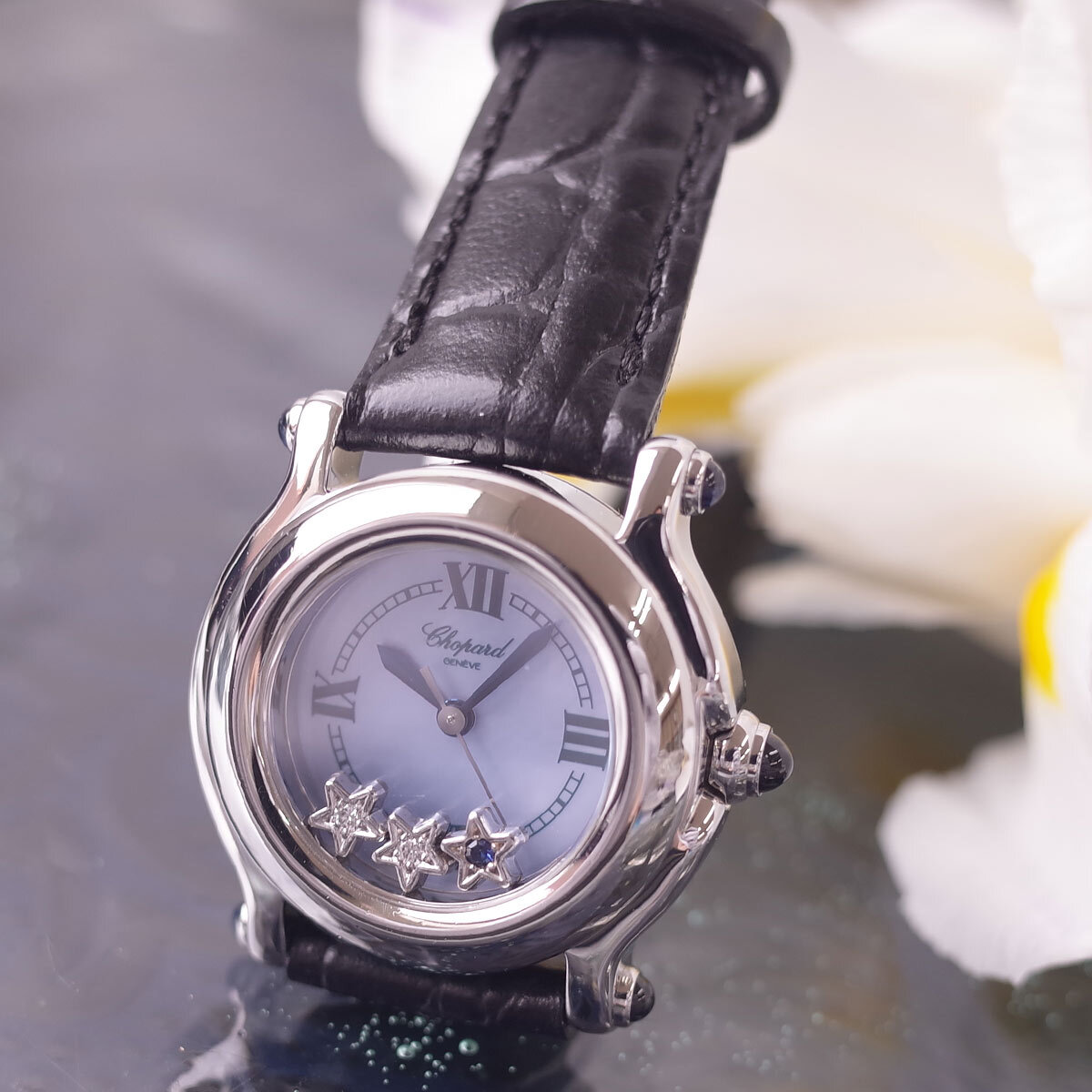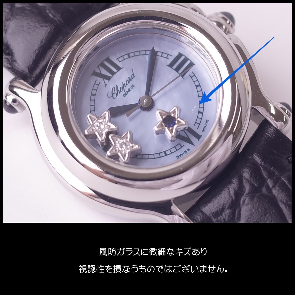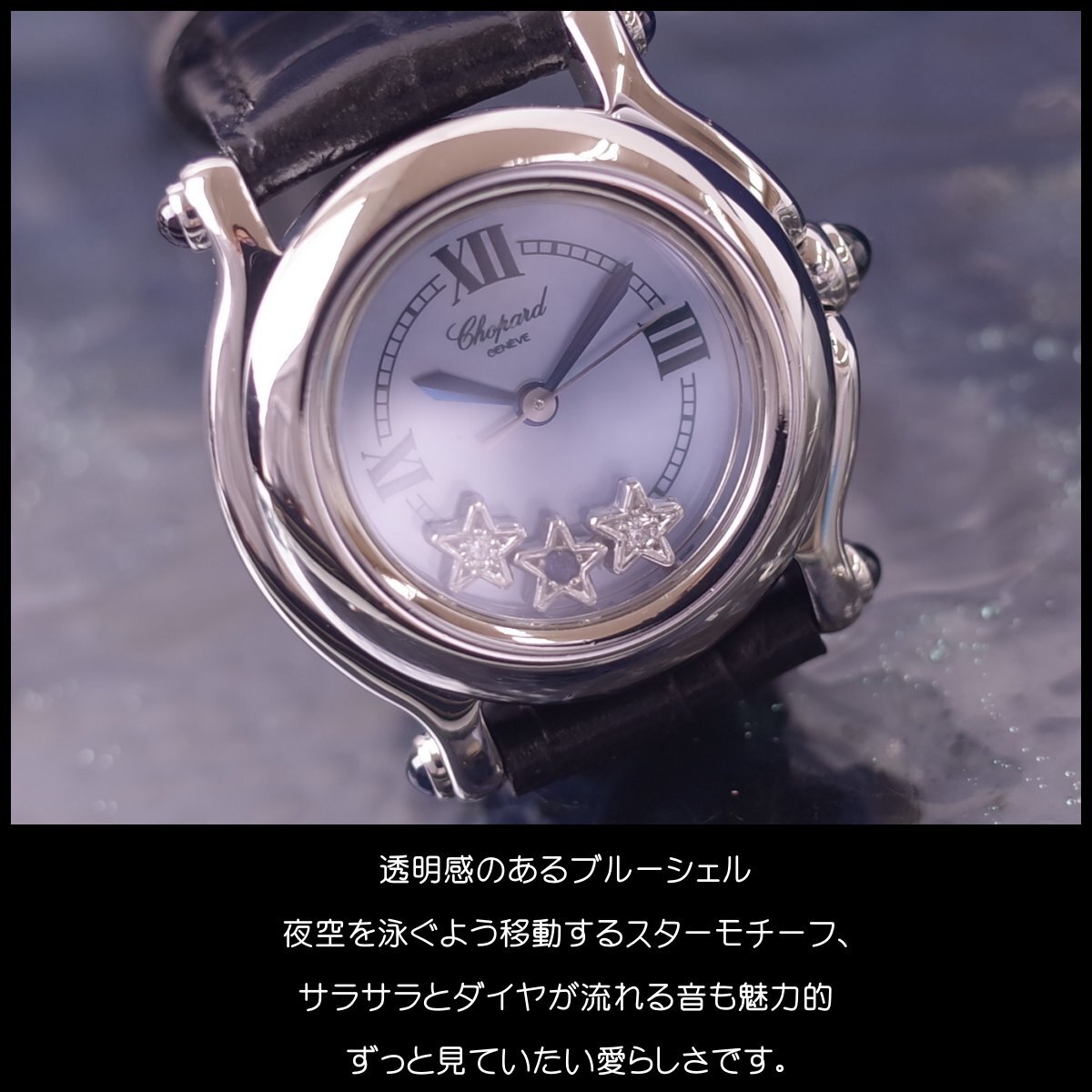 コンディション | ABランク ・ケースは磨き仕上げ済 塵キズあり 目立つ打痕なく良好 ・ダイヤル美品 ・風防ガラスに小キズあり ブルーシェルの透明感のあるブルーフェイス。 夜空で瞬く星のようにクルクル流れるようなスターダイヤモンド 愛らしく飽きのこないフェイスです。 |