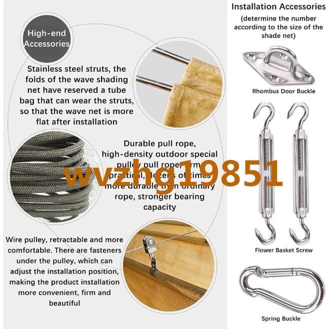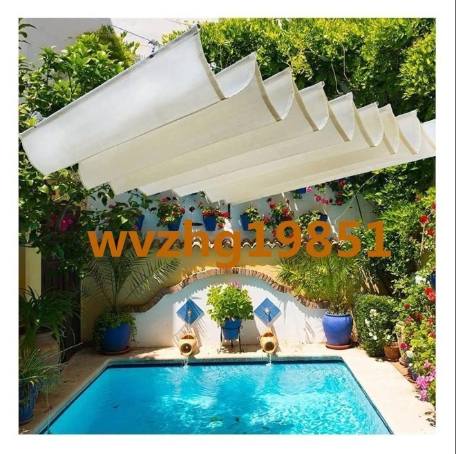 商品情報リトラクタブルサンシェード。頑丈なポリエチレン製のメッシュ生地でできています。夏には涼しい風を通すこともでき、厳しい紫外線を最大85%カットすることができます。ウェーブドロップ・リトラクタブルシェード。創造的なデザインで、ほとんどの屋外用途に適してい