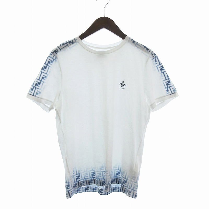 フェンディ FENDI 美品 23SS Tシャツ カットソー 半袖 クルーネック FF柄 プリント FY0894 AN21 白 ホワイト M メンズ