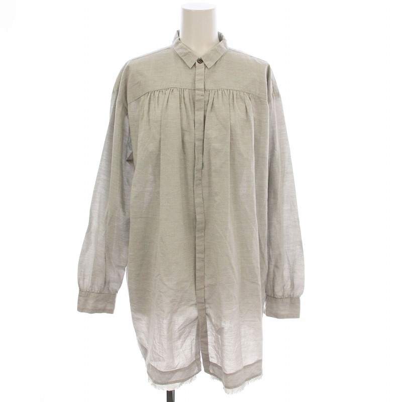 パドカレ pas de calais ウール混 シャツ ブラウス MP-1912 長袖 比翼ボタン 36 ライトグレー