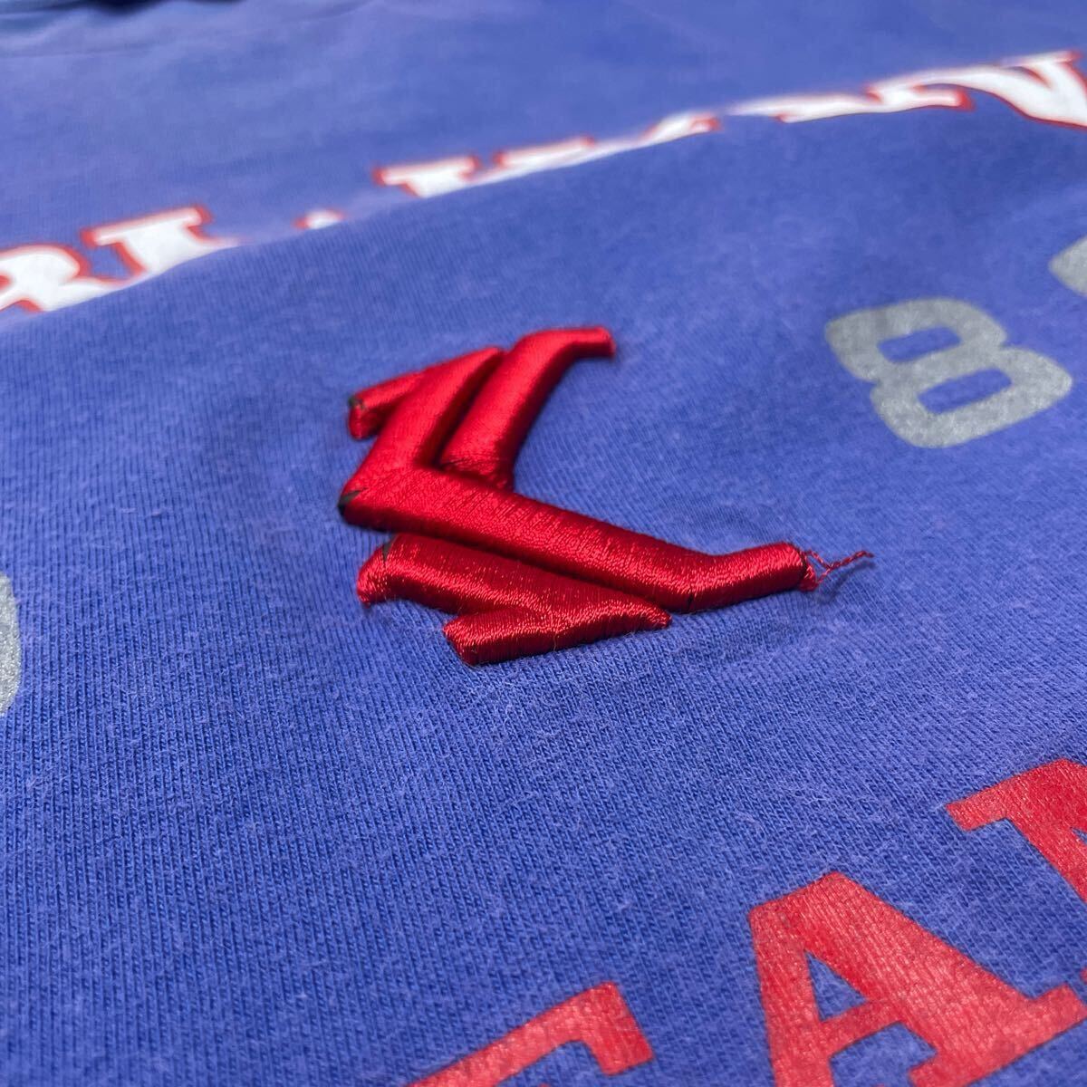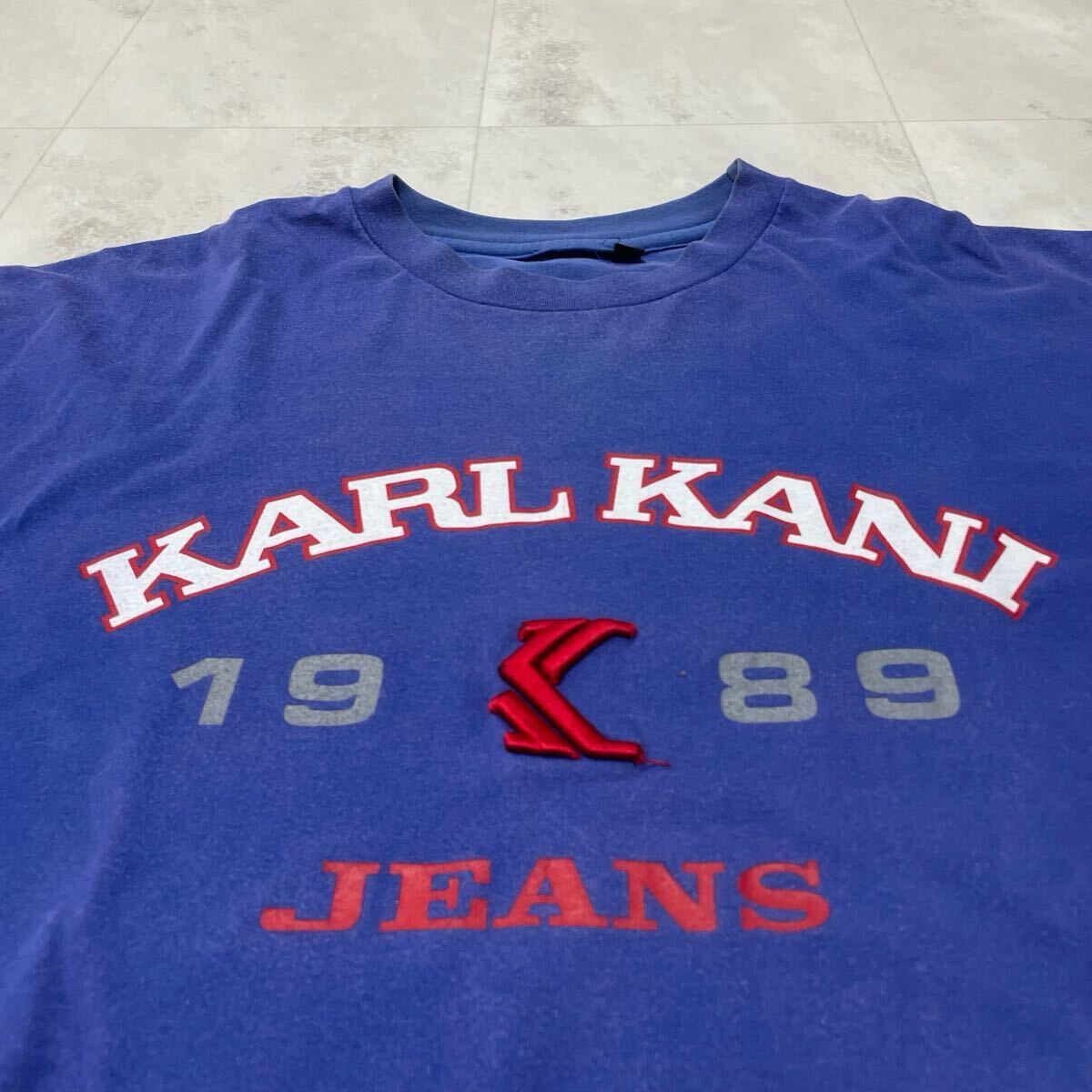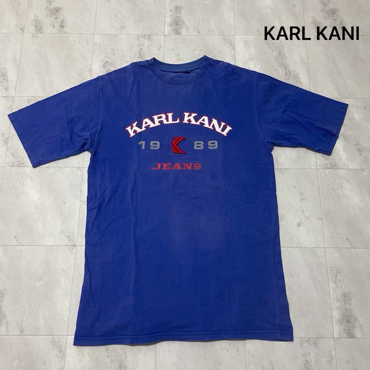 KARL KANI カールカナイ 90s Tシャツ T-shirt TEE 半袖 ストリート 刺繍 プリントロゴ ヒップホップ B系 ブルー サイズL 玉SS3489