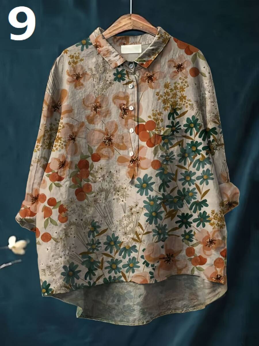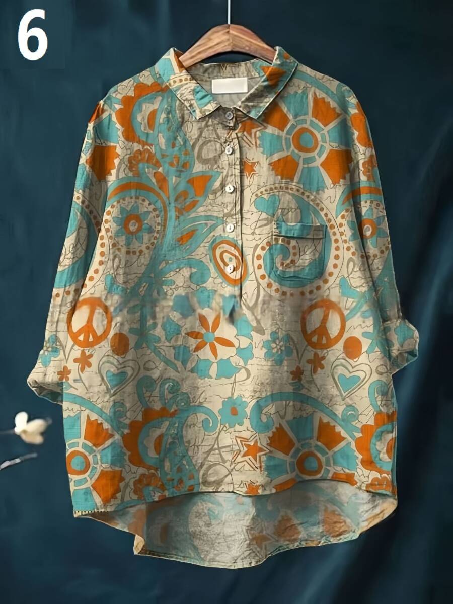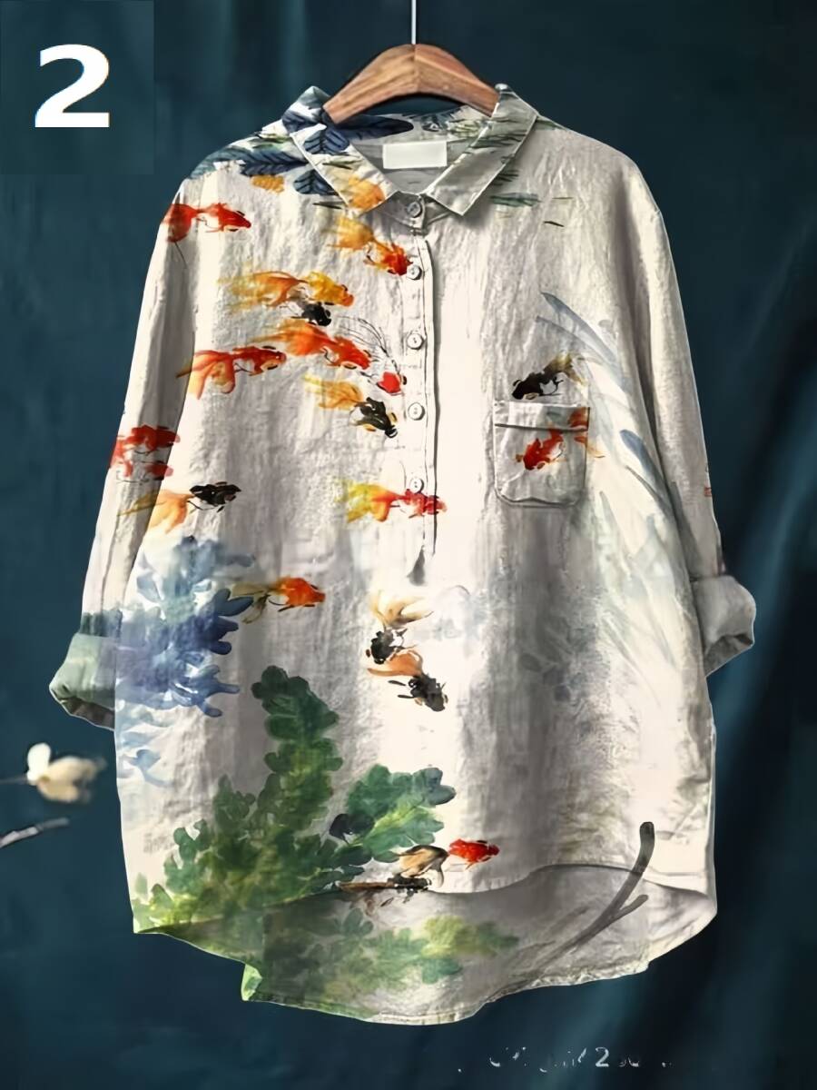 新品柄選択可オシャレ シャツ ブラウス 着痩せ チュニックシャツ プリント柄 トップス レディース 長袖 体型カバー
