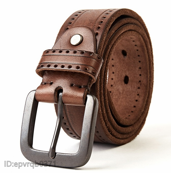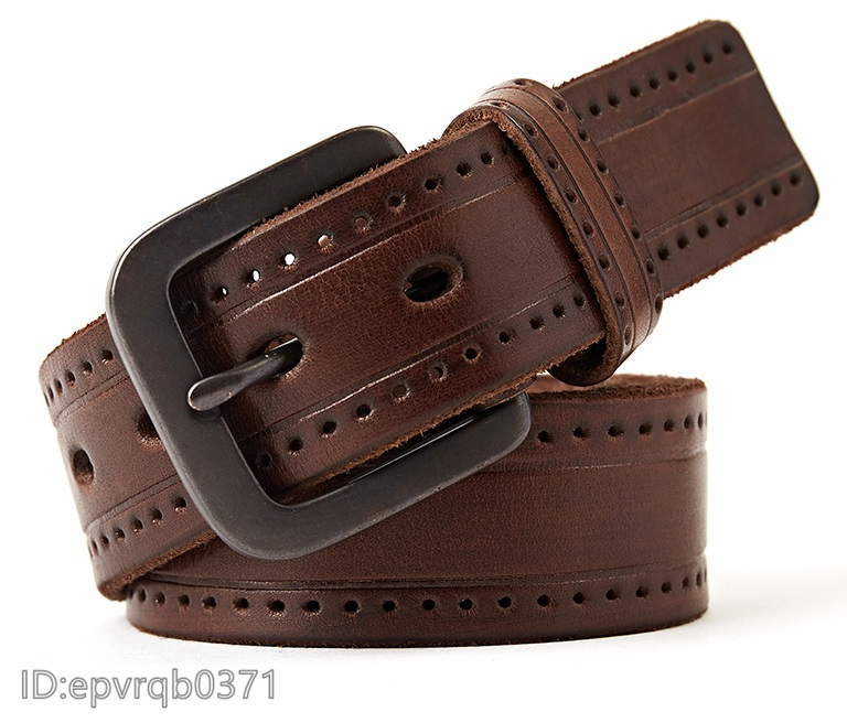新入荷 本革牛革ベルト メンズ ベルト イタリア 一枚革 高級レザー ヴィンテージ加工 紳士用 ポンチ付き 長さ調整可能 /コーヒー