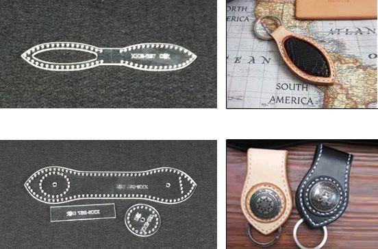 型に沿って革をカットし縫ってください。型はアクリル製ですので何度もご使用になれます。