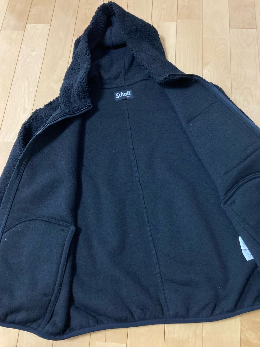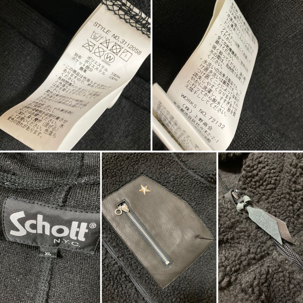 美品☆XL [Schott] LEATHER POCKET PILE JACKET ワンスタースタッズ ディアレザー切替 ボアフリースジャケット パーカー XL ブラック 3112058 ショット